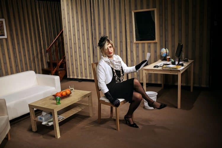 Romanian actors Silviu Biris and Andreea Sfron rehearsing for the opening of the comedy play 'Nobody is Perfect', directed by Radu Beligan, as seen in Bucharest on January 14, 2011.