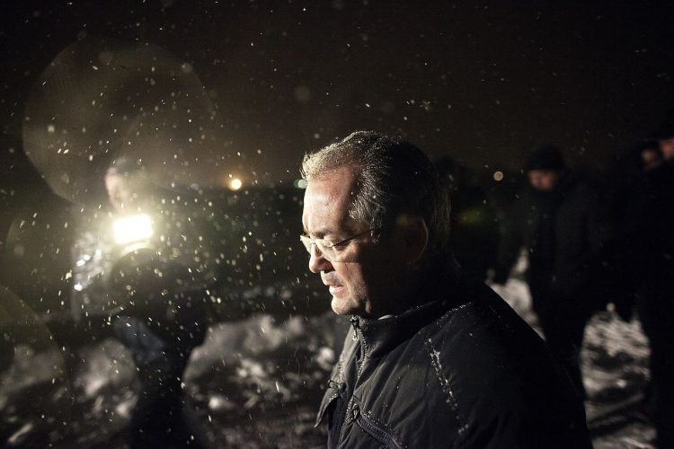 Romanian Prime Minister Emil Boc visiting the strained drives caught in the heavy snow falls, as seen in Magurele, near Bucharest, on January 26, 2012.