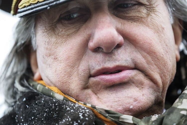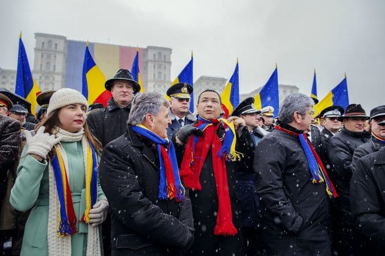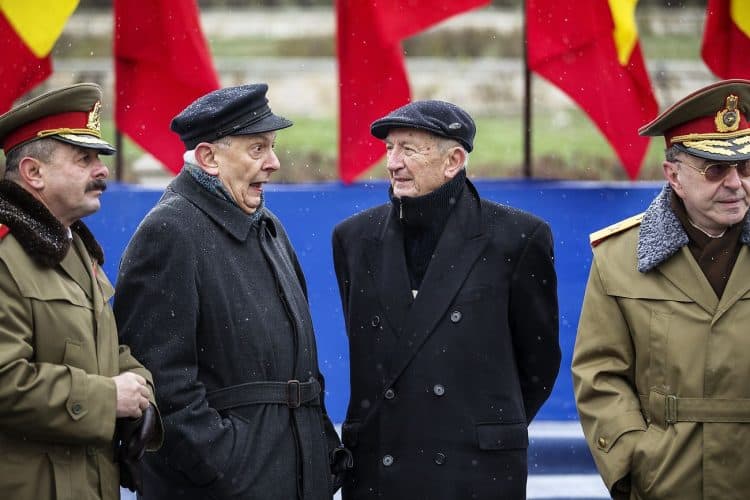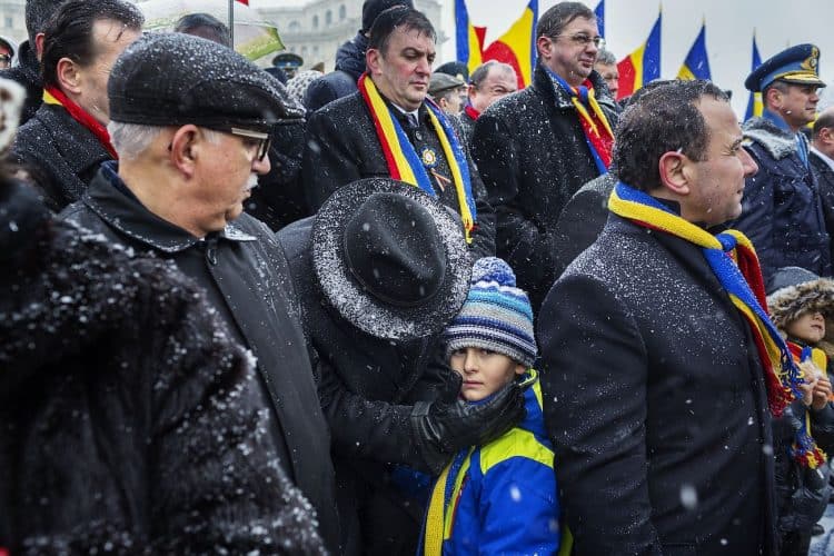 Ultranationalist politician Corneliu Vadim Tudor, left, attends the ceremonies marking the National Day of Romania, as seen on December 1, 2012.
