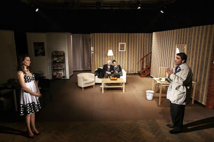 Romanian actors Andreea Sfron, Stefan Radof, Rodica Ionescu and Silviu Biris rehearsing for the opening of the comedy play 'Nobody is Perfect', directed by Radu Beligan, as seen in Bucharest on January 14, 2011.
