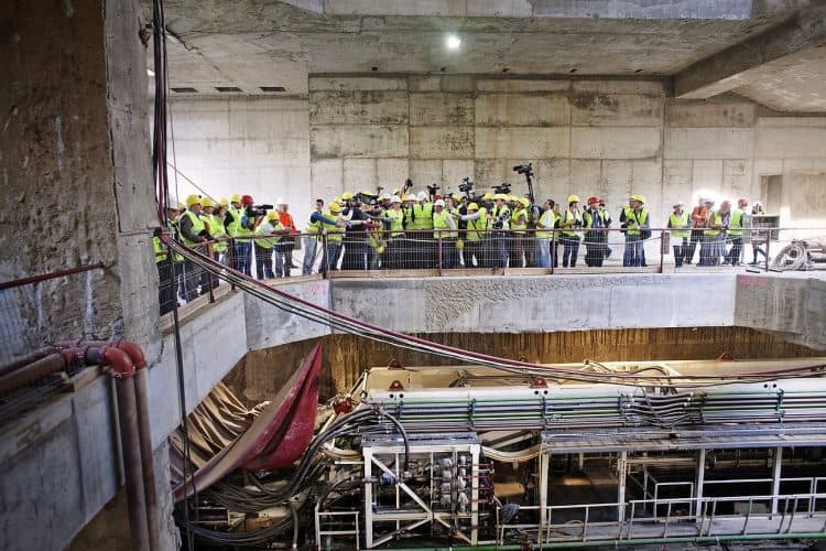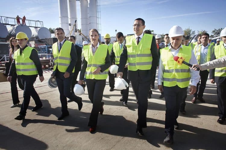 Ramona Manescu, ministrul transporturilor alaturi de premierul Victor Ponta cu ocazia vizitei la santierul de constructie a tronsonului de metrou Drumul Taberei - Universitate, în Bucuresti, miercuri, 25 septembrie 2013.