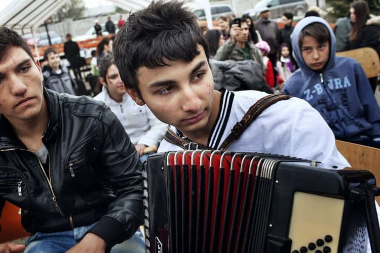 Romanian of Roma origins performs on stage during Roma International Day celebrations, as seen in Tunari on April 9, 2012.