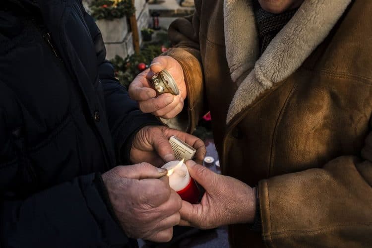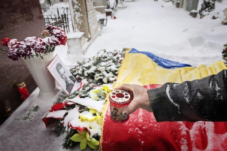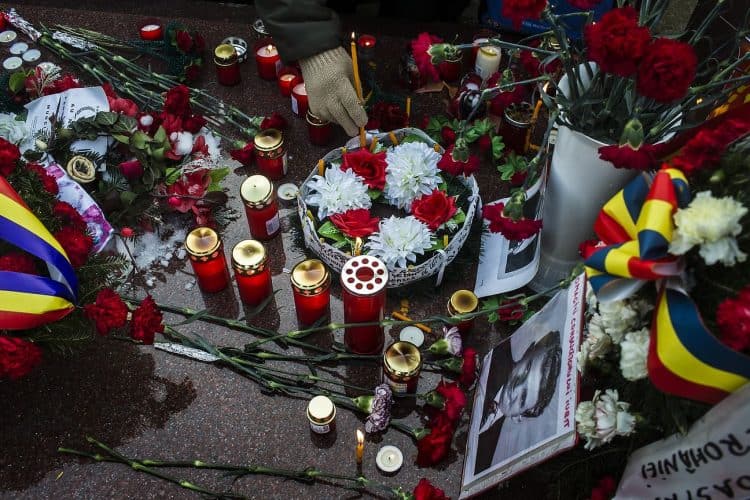 ROMANIA, Bucharest : Man places a lighted candle over the late Communist dictator Nicolae Ceausescu and his wife Elena's new grave at the Ghencea cemetery in Bucharest, during a commemoration of his 96th birthday, on Sunday Jan. 26 2014. The bodies of executed Romanian dictator Nicolae Ceausescu and his wife Elena were reburied late December 8, 2010 nearly five months after they were exhumed for tests to confirm their identity. Ceausescu and his wife were executed by firing squad on December 25, 1989, following an anti-communist popular uprising and summary trial. © Mugur Varzariu