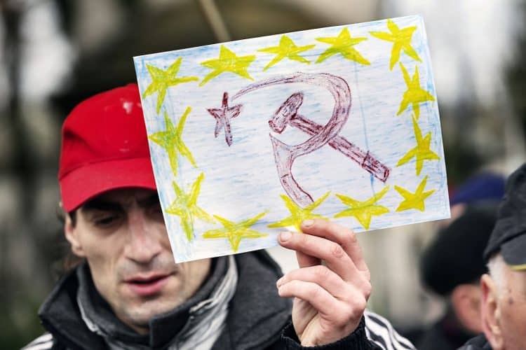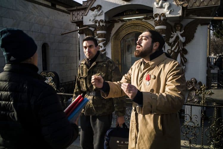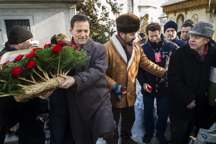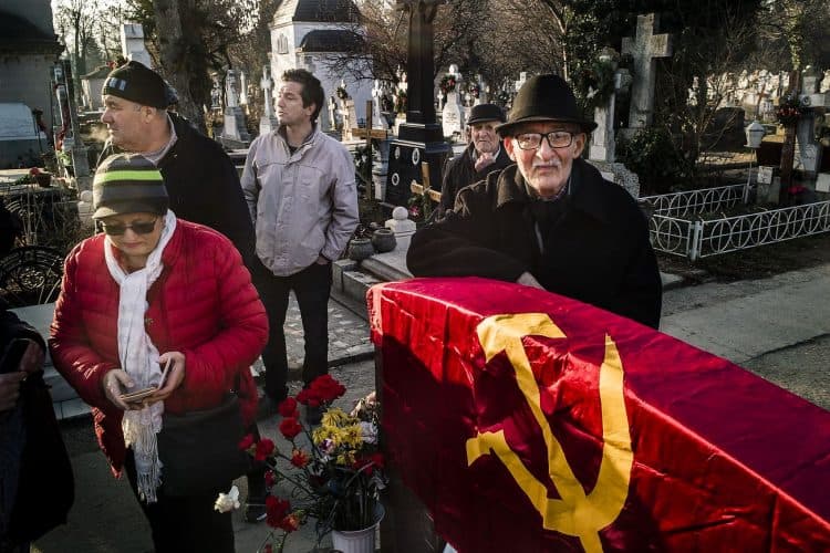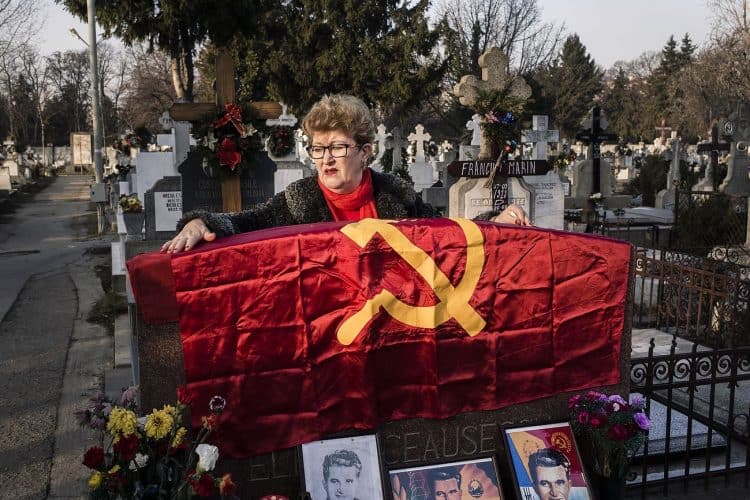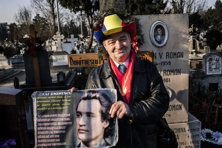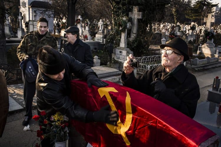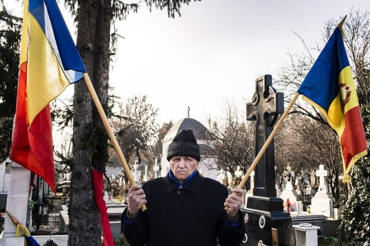 BUCHAREST, ROMANIA - Jan 26: Petre Ignatencu, the leader of the New Romanian Communist Party, a former kayaker and currently a taxi driver, attending the commemoration of late Communist dictator Nicolae Ceausescu birthday, on Tuesday Jan. 26, 2020. The bodies of executed Romanian dictator Nicolae Ceausescu and his wife Elena were reburied late December 8, 2010 nearly five months after they were exhumed for tests to confirm their identity. Ceausescu and his wife were executed by firing squad on December 25, 1989, following an anti-communist popular uprising and summary trial. © Mugur Varzariu