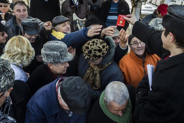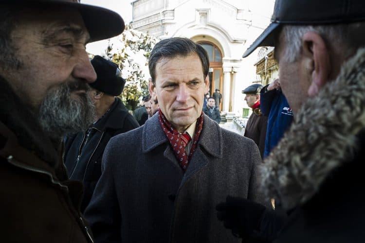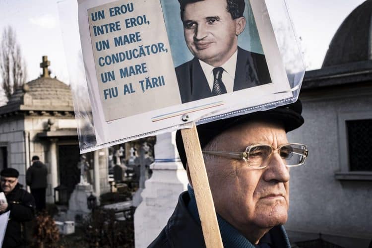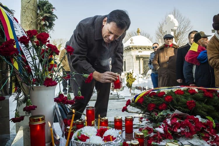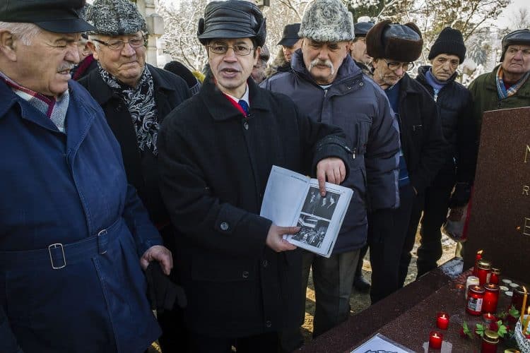 BUCHAREST, ROMANIA - Jan 26: Petre Ignatencu, the leader of the New Romanian Communist Party, a former kayaker and currently a taxi driver, attending the commemoration of late Communist dictator Nicolae Ceausescu birthday, on Tuesday Jan. 26, 2016. The bodies of executed Romanian dictator Nicolae Ceausescu and his wife Elena were reburied late December 8, 2010 nearly five months after they were exhumed for tests to confirm their identity. Ceausescu and his wife were executed by firing squad on December 25, 1989, following an anti-communist popular uprising and summary trial. © Mugur Varzariu