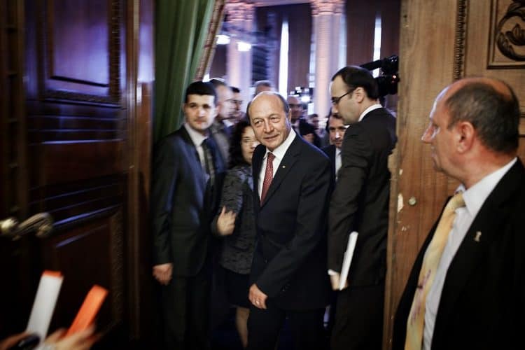 President of Romania, Traian Basescu seen leaving the Democratic Liberal Party National Convention in Bucharest, May 19, 2011.