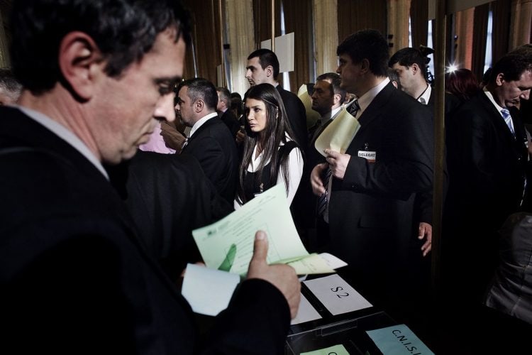 Members of the Democratic Liberal Party seen at the National Convention in Bucharest, May 19, 2011.