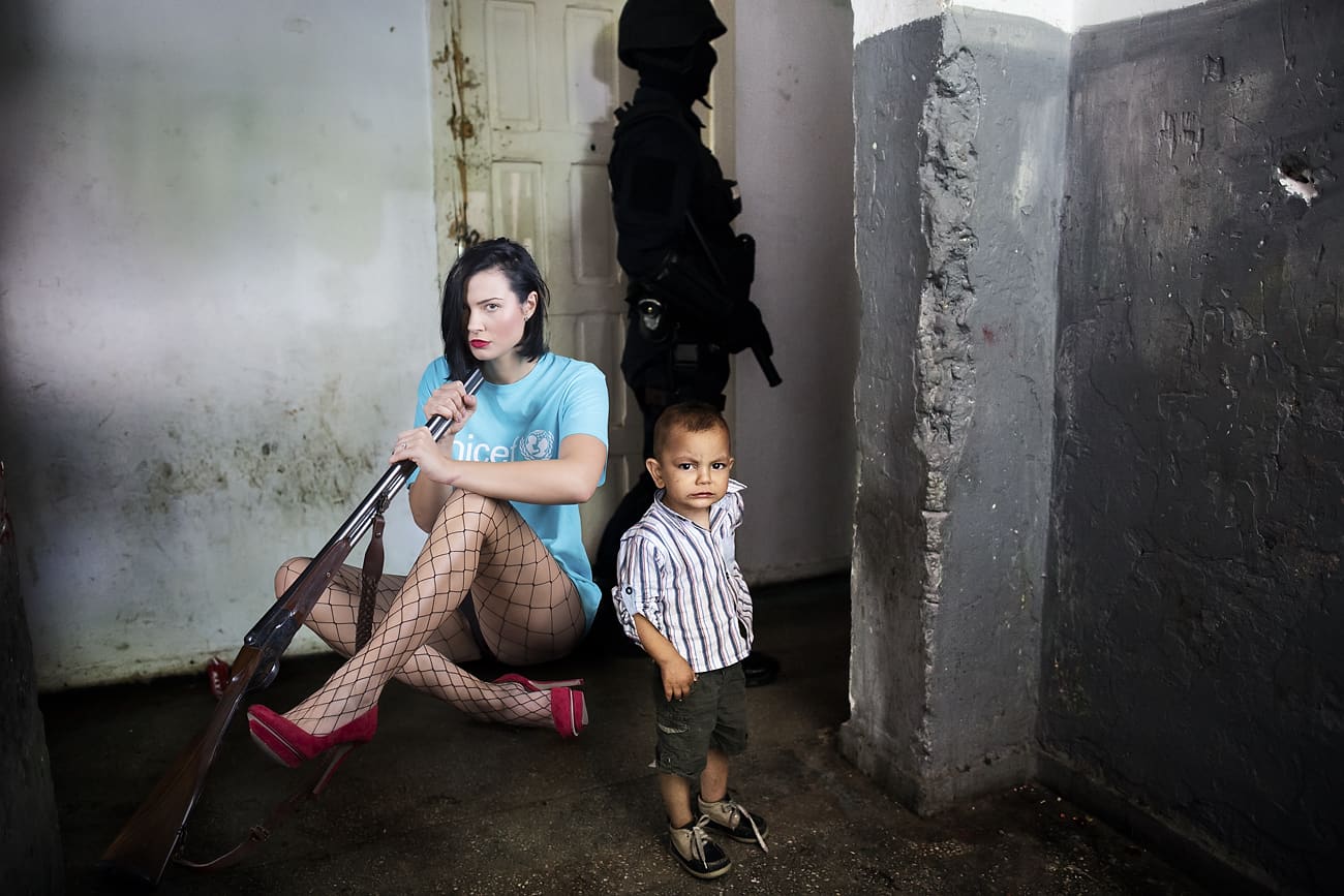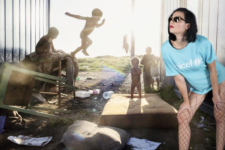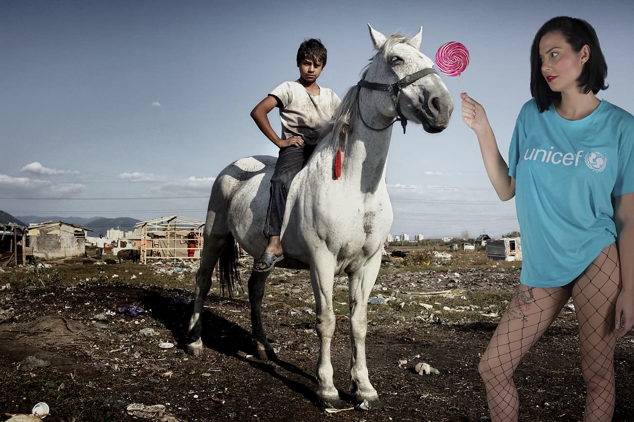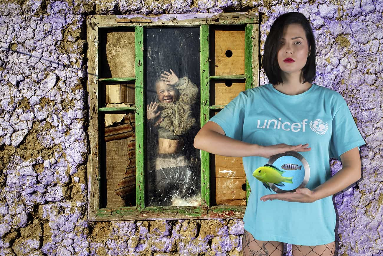 I couldn’t cry out, and so I created a work I have titled UNICEF Fantasia. From the outset, I want to say that the imaginary character, the UNICEF unicorn, is a symbol that would stand equally well for other similar international and local organizations.