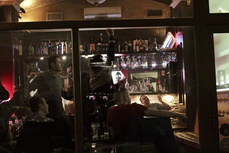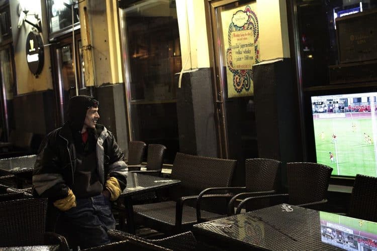 BUCHAREST, ROMANIA - JAN 08: People watching the football match between Hungary and Romania in the old part of Bucharest on January 08, 2013. Photography by Mugur Varzariu/Getty Images/Newsweek.
