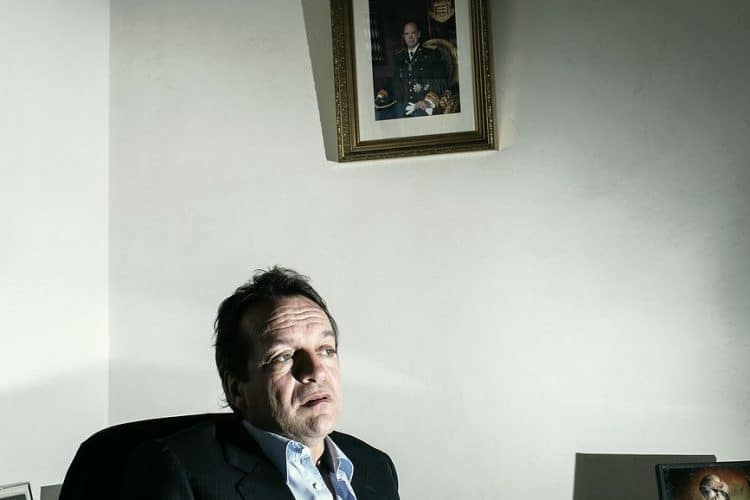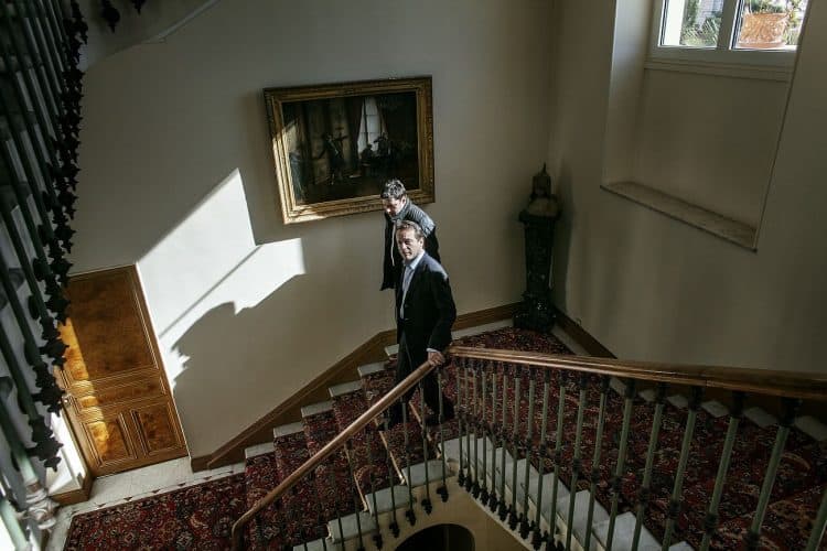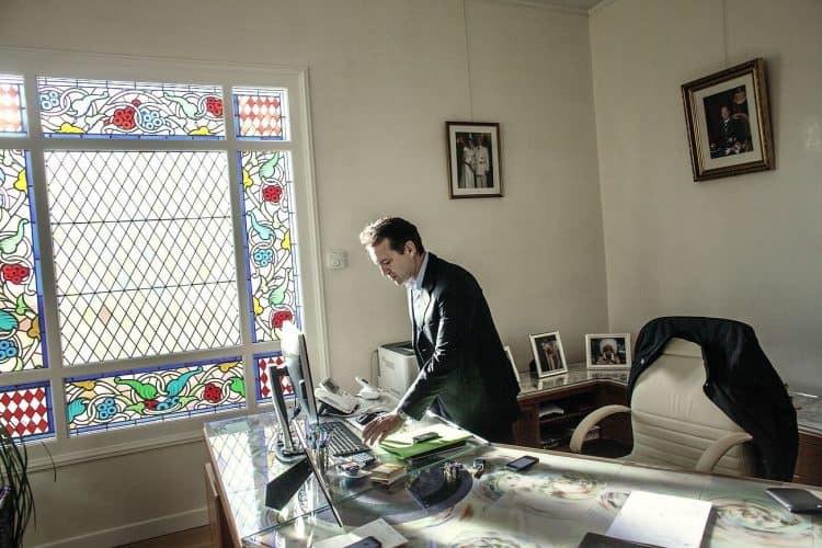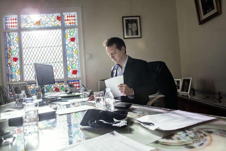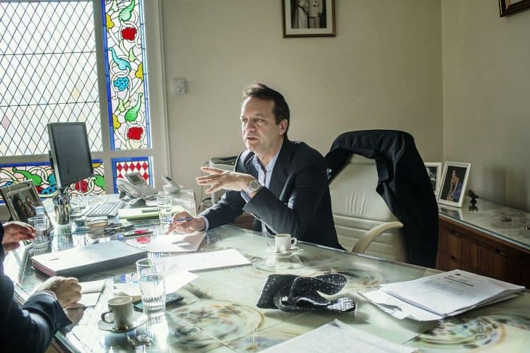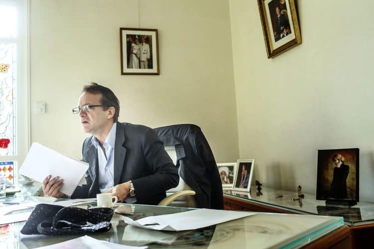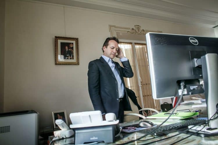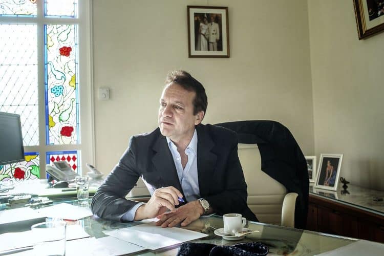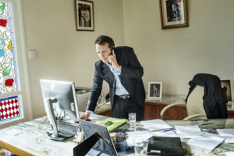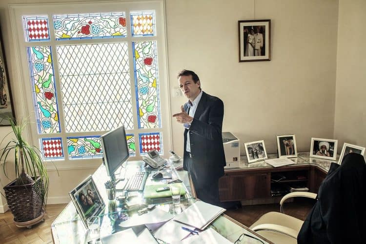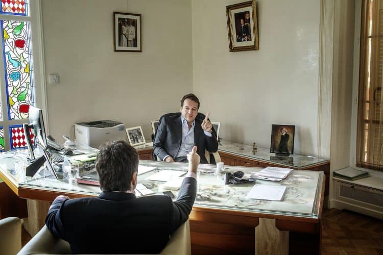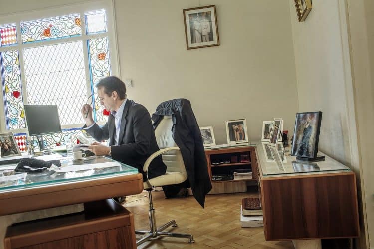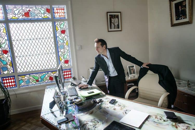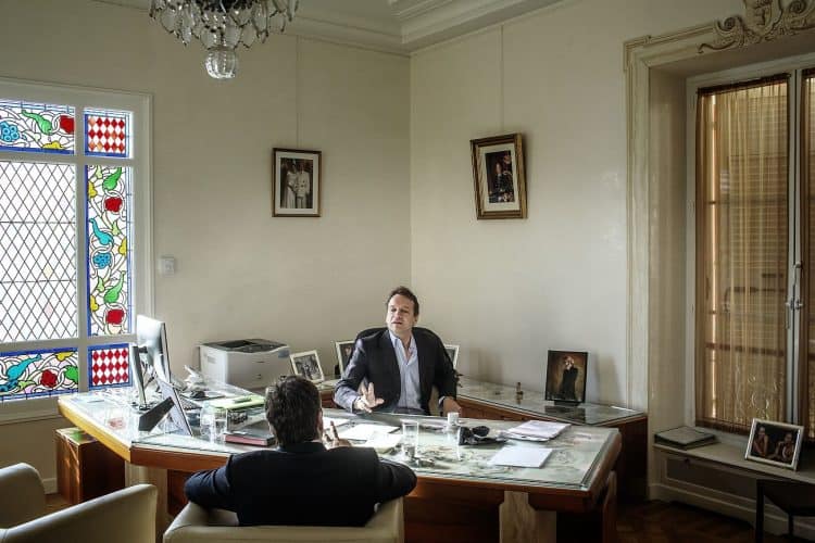 The Mayor of Monaco Georges Marsan, in his office in Monaco, during a meeting with an international adviser, as seen on February 13, 2013.