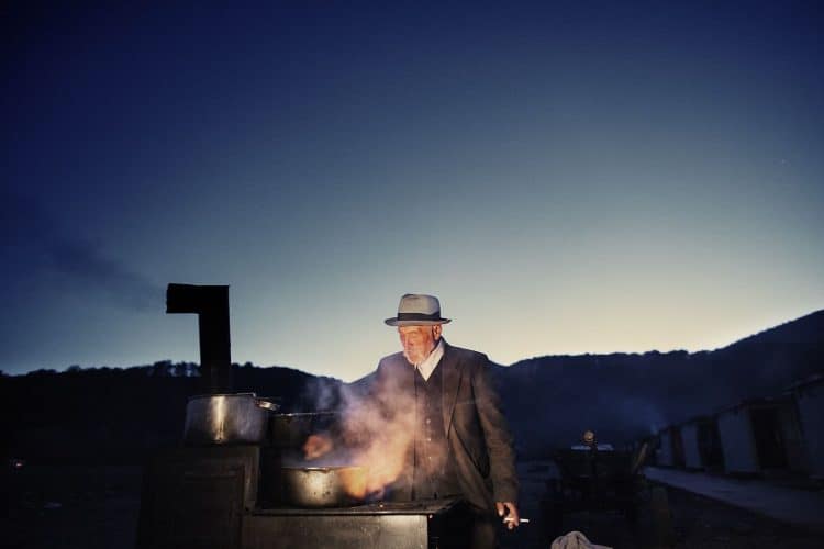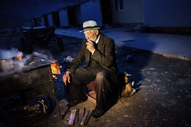 Romanian man of Roma origins seen preparing dinner in a Roma ghetto in Piatra Neamt on October 9, 2012 during research interviews conducted by AI team members. The two time evicted community had no electricity at the time the interviews where conducted.