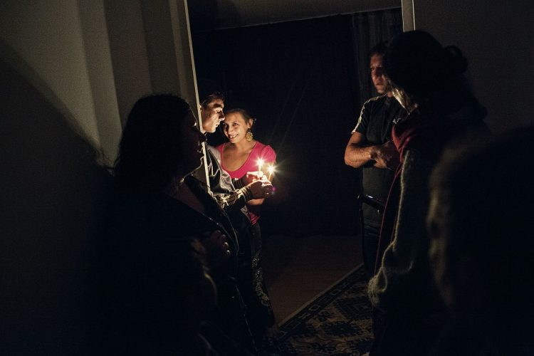 Romanian family of Roma origins as seen in a Roma ghetto in Piatra Neamt on October 9, 2012 during research interviews conducted by AI team members. The two time evicted community had no electricity at the time the interviews where conducted.