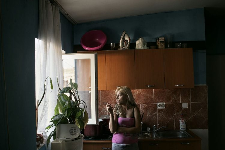 Romanian woman of Roma origins having a cigarette inside her house as seen on Pata Rat, near Cluj-Napoca, after being interviewed by the AI research team members. The settlement on Pata Rat was created mid December 2010, after Roma people where forcibly evicted from their informal settlement in downtown Cluj-Napoca.