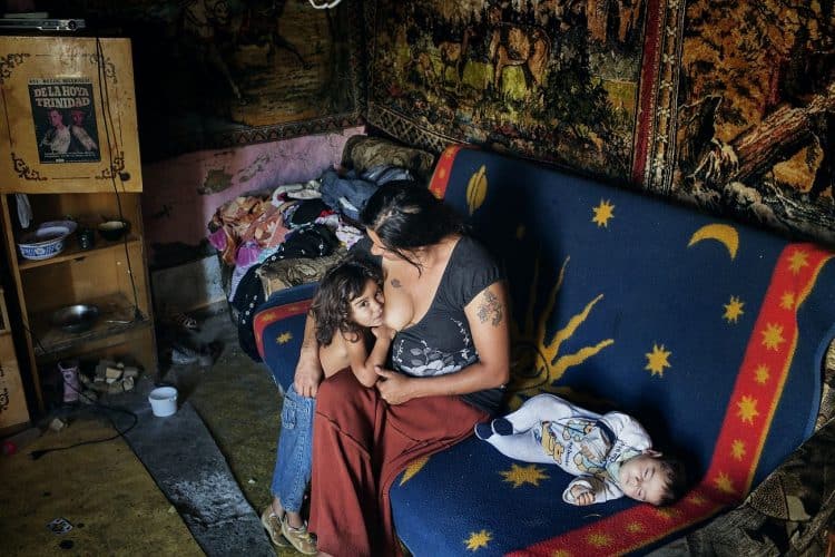 Roma woman seen breastfeeding on Craica after being interviewed by AI representatives. Some of these settlements, like the one on Craica, date back to early 90's. They where always tolerated by the authorities who verbally encouraged Roma to build in the area while giving reassurance that nothing bad would ever happen to them. Yet, today, while campaigning on a hate ticket, the same authorities started forced evictions without other reasons than ethnic cleansing of the cities.