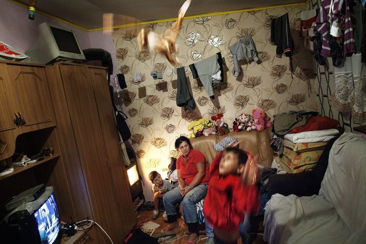 Romanians of Roma origins seen inside their room at Cuprom. Most of the people at Cuprom where forcibly evicted from Craica, an informal Roma settlement in Baia Mare. Some of these settlements, like the one on Craica, date back to early 90's. They where always tolerated by the authorities who verbally encouraged Roma to build in the area while giving reassurance that nothing bad would ever happen to them. Yet, today, while campaigning on a hate ticket, the same authorities started forced evictions without other reasons than ethnic cleansing of the cities.
