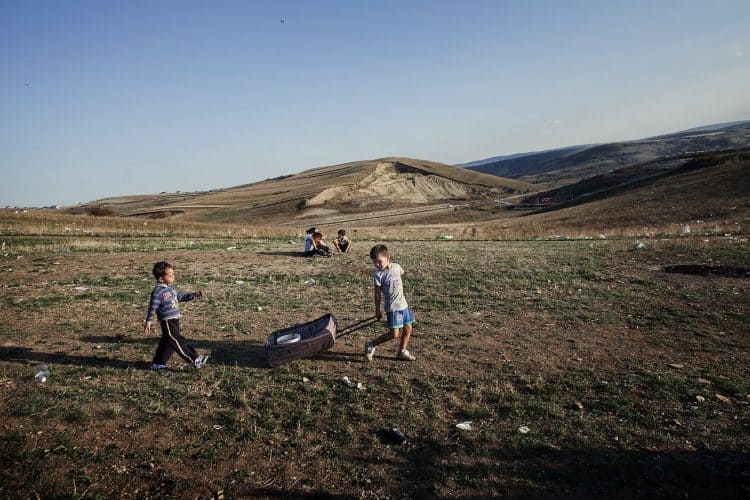 Romanian kids of Roma origins playing as seen on Pata Rat, near Cluj-Napoca, where AI research team conducted interviews. The settlement on Pata Rat, near the city dumpster was created mid December 2010, after Roma people where forcibly evicted from their informal settlement in downtown Cluj-Napoca.