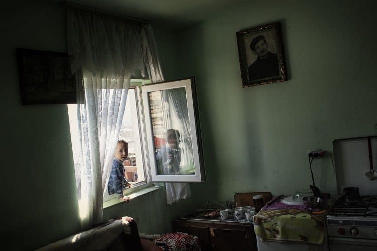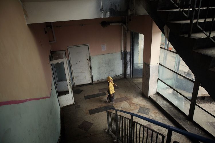 Roma kid seen at Cuprom in the entrance hallway of the third building. Most of the people at Cuprom where forcibly evicted from Craica, an informal Roma settlement in Baia Mare. Some of these settlements, like the one on Craica, date back to early 90's. They where always tolerated by the authorities who verbally encouraged Roma to build in the area while giving reassurance that nothing bad would ever happen to them. Yet, today, while campaigning on a hate ticket, the same authorities started forced evictions without other reasons than ethnic cleansing of the cities.