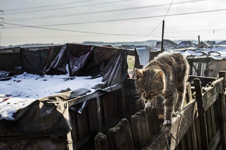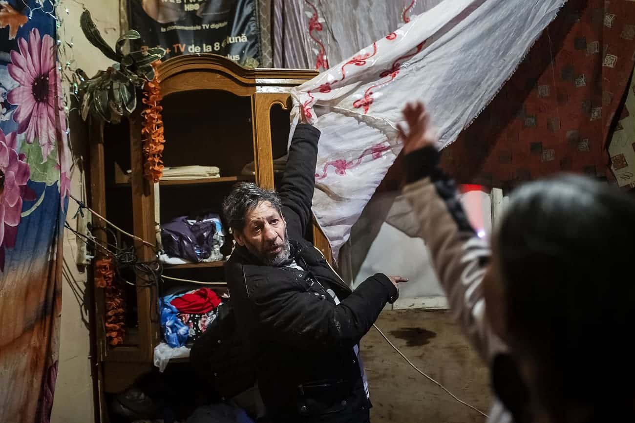 That first assignment back in 2011 was to document the construction of a wall which effectively created a Roma ghetto in a dilapidated social housing complex on the city’s notorious Horea street. During that same mission he made his first contact with the Roma community in the settlement known as Craica and became aware of the threat of eviction by the city mayor that was building on their horizon. Recognizing the harsh reality that faced these people he assisted representatives of a Roma NGO to prepare for a public debate to ensure that they could have appropriate responses to each possible scenario. During this visit he received a veiled threat by a Roma loan shark known as Pise, who said that the Mayor of the city had asked him and his henchmen if they could make Varzariu “decide to leave.” Pise claimed to have responded to the mayor by asking “Why should I do this?” he is only here to help the Roma.”