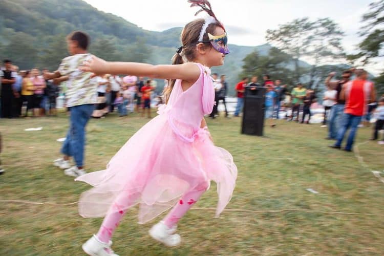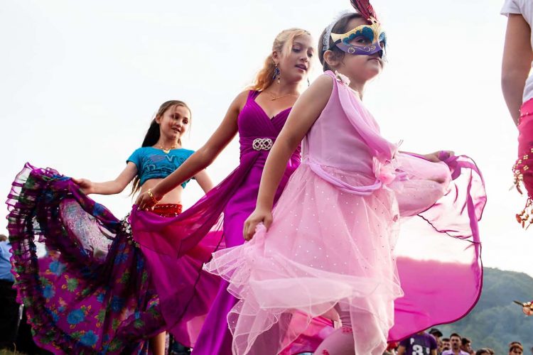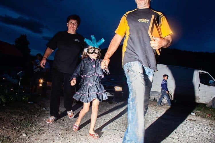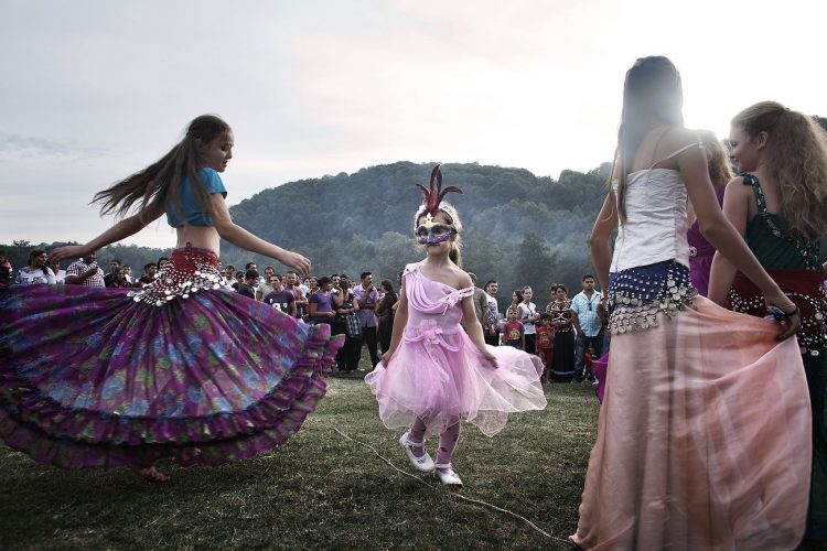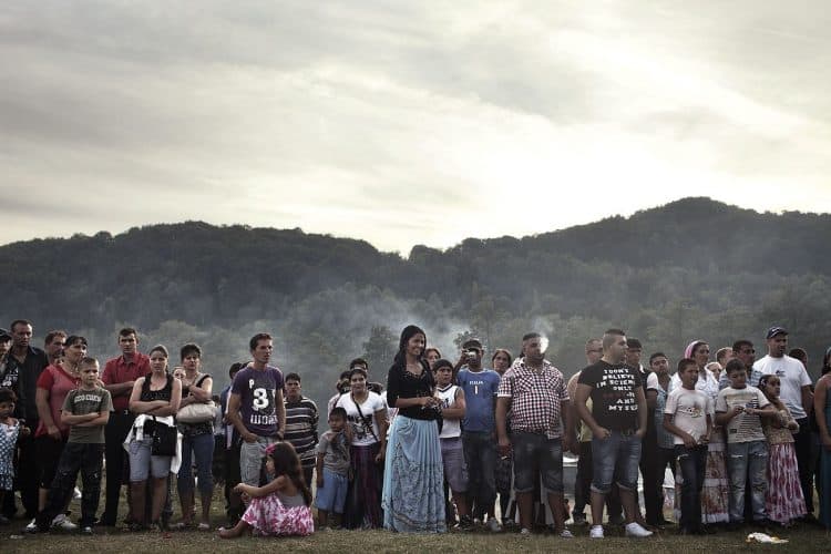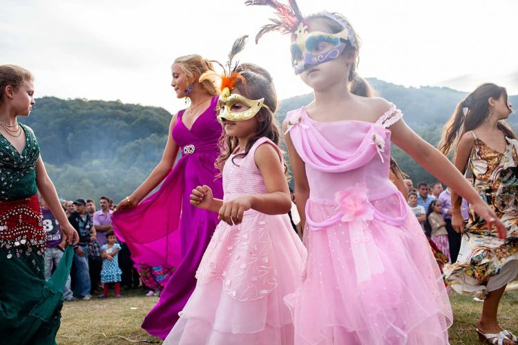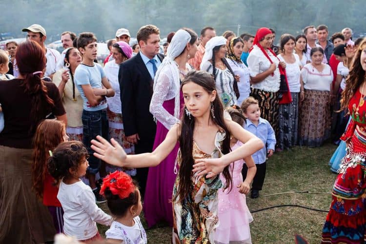 Roma and non-roma people watch roma kids dance during the traditional ethnic Roma festival in Costesti, 210 km (128 miles) west of Bucharest, September 8, 2011. Following their tradition, thousands of Roma from all over Romania, which has Europe's largest Roma community, gather every year to celebrate the birthday of St. Mary, to make wedding arrangements for their sons and daughters and to show off their wealth.
