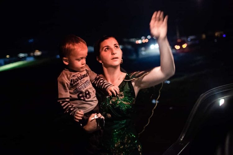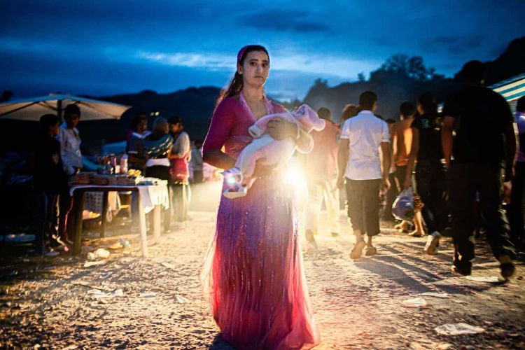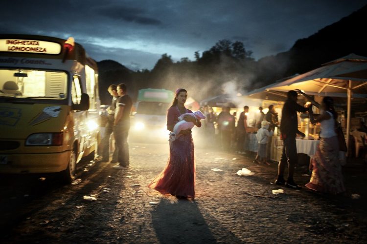 Roma women holding her newborn during the traditional ethnic Roma festival in Costesti, 210 km (128 miles) west of Bucharest, September 8, 2011. Following their tradition, thousands of Roma from all over Romania, which has Europe's largest Roma community, gather every year to celebrate the birthday of St. Mary, to make wedding arrangements for their sons and daughters and to show off their wealth.