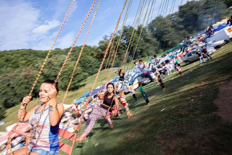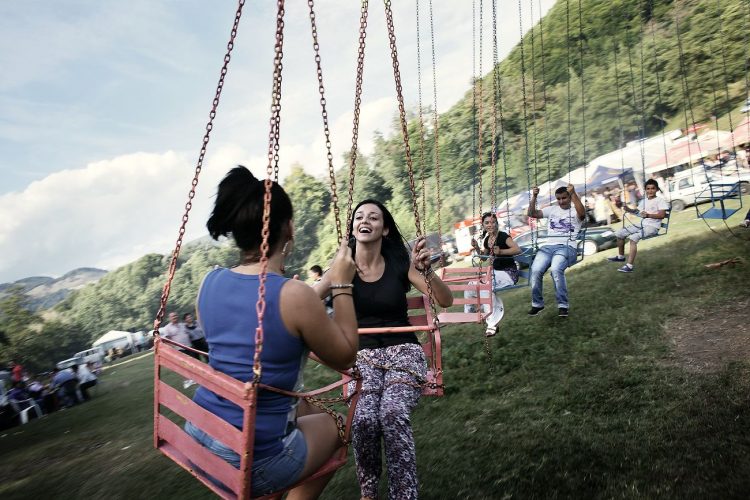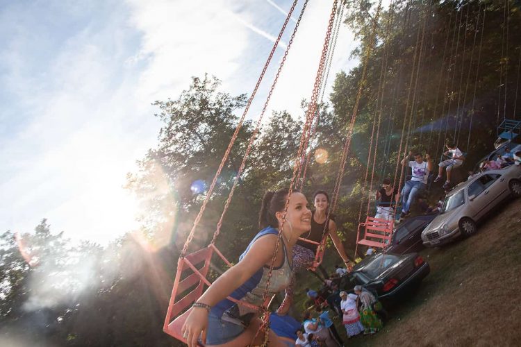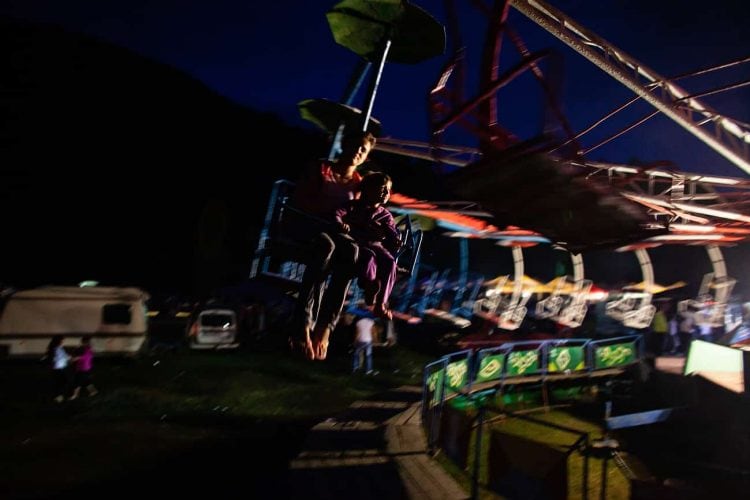 Romanians of roma and non-roma origins on a Merry-go-round during the traditional ethnic Roma festival in Costesti, 210 km (128 miles) west of Bucharest, September 8, 2011. Following their tradition, thousands of Roma from all over Romania, which has Europe's largest Roma community, gather every year to celebrate the birthday of St. Mary, to make wedding arrangements for their sons and daughters and to show off their wealth.