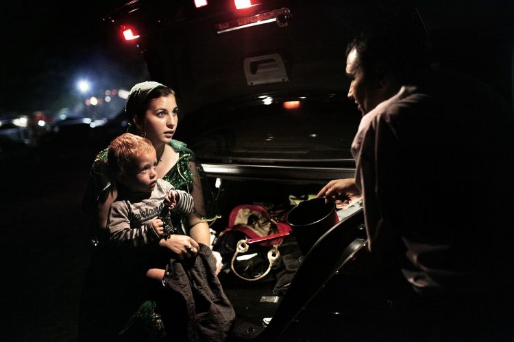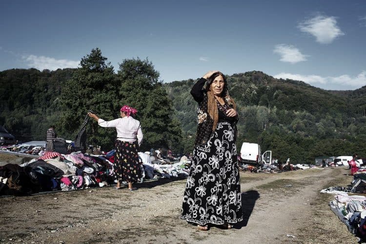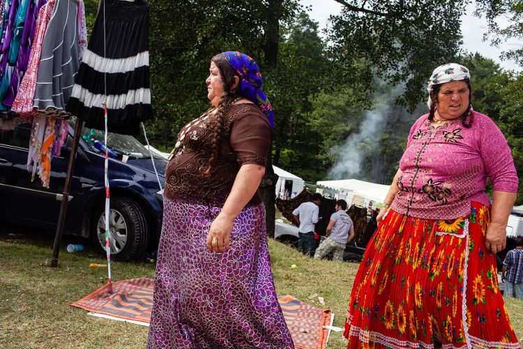 Roma women seen changing baby's cloths during the traditional ethnic Roma festival in Costesti, 210 km (128 miles) west of Bucharest, September 8, 2011. Following their tradition, thousands of Roma from all over Romania, which has Europe's largest Roma community, gather every year to celebrate the birthday of St. Mary, to make wedding arrangements for their sons and daughters and to show off their wealth.