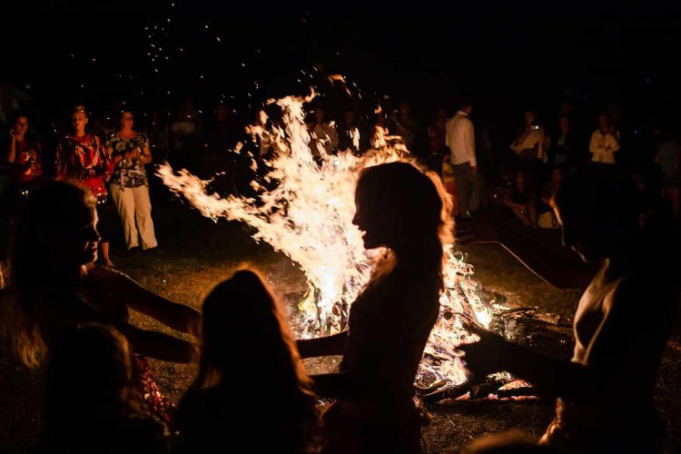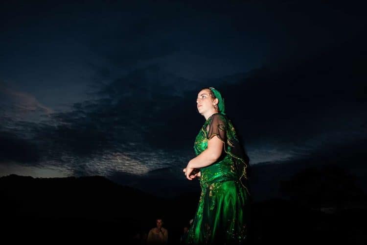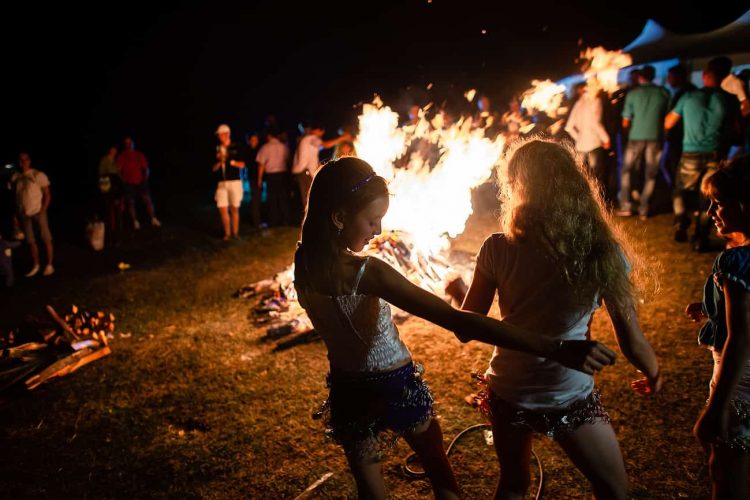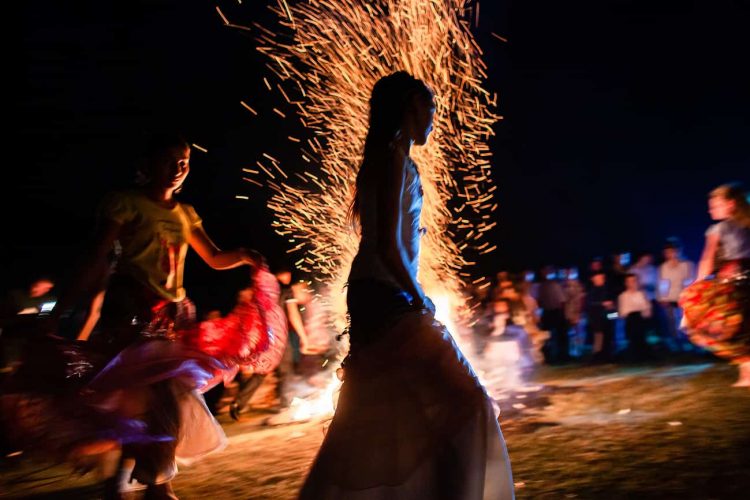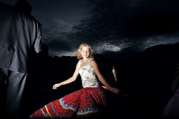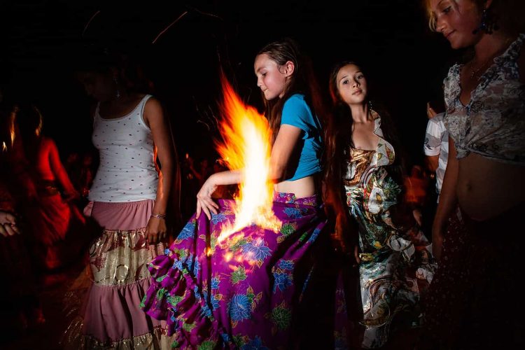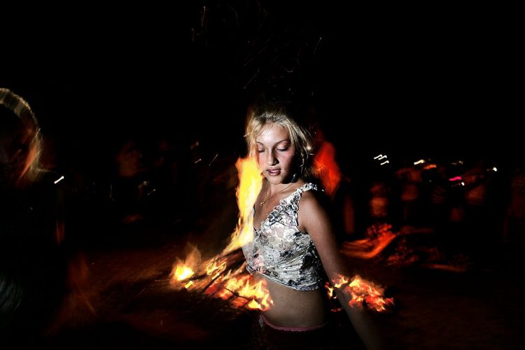Roma girl dances by the fire during the traditional ethnic Roma festival in Costesti, 210 km (128 miles) west of Bucharest, September 8, 2011. Following their tradition, thousands of Roma from all over Romania, which has Europe's largest Roma community, gather every year to celebrate the birthday of St. Mary, to make wedding arrangements for their sons and daughters and to show off their wealth.