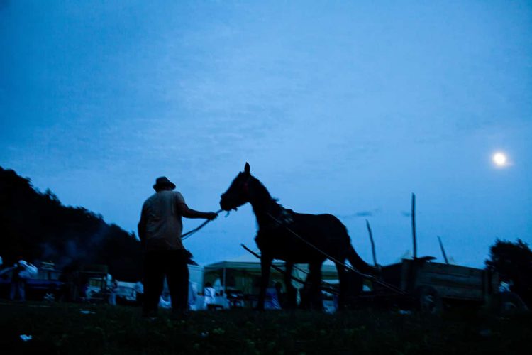 Roma man pulls his horse and carriage during the traditional ethnic Roma festival in Costesti, 210 km (128 miles) west of Bucharest, September 8, 2011. Following their tradition, thousands of Roma from all over Romania, which has Europe's largest Roma community, gather every year to celebrate the birthday of St. Mary, to make wedding arrangements for their sons and daughters and to show off their wealth.