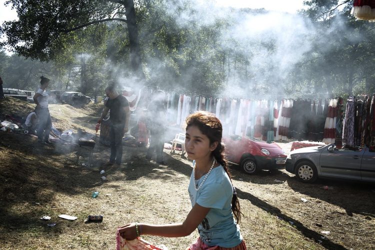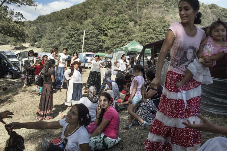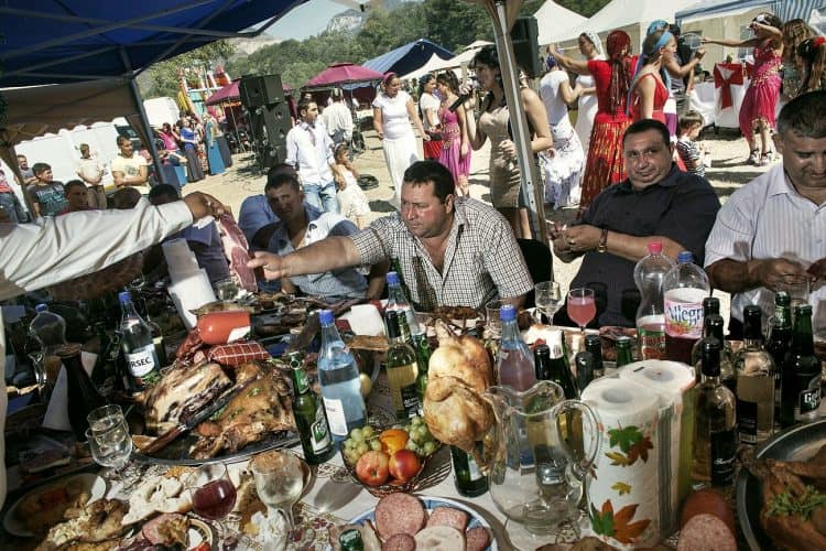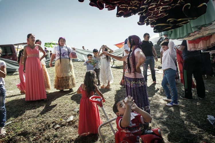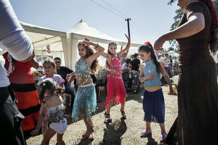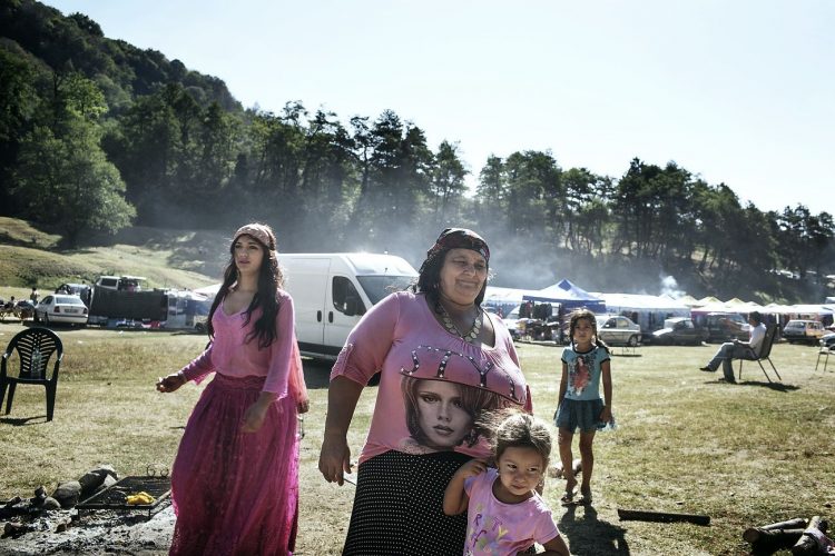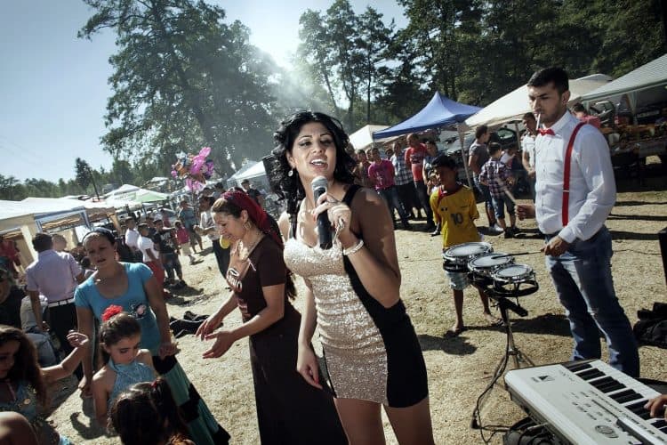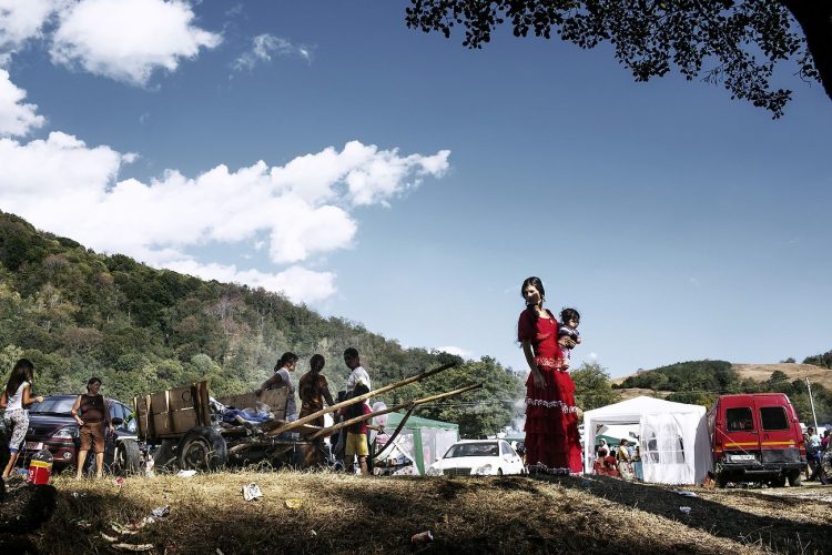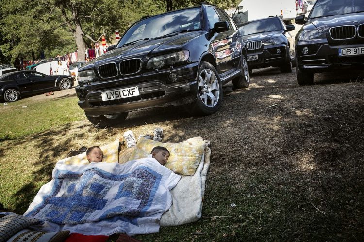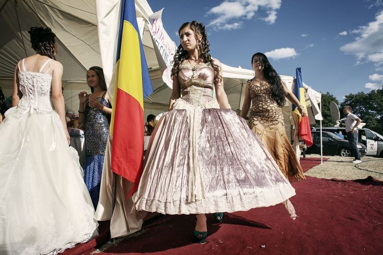 Romanians of Roma origins during the traditional ethnic Roma festival in Costesti, 210 km (128 miles) west of Bucharest, September 8, 2012. Following their tradition, thousands of Roma from all over Romania, which has Europe's largest Roma community, gather every year to celebrate the birthday of St. Mary, to make wedding arrangements for their sons and daughters and to show off their wealth.