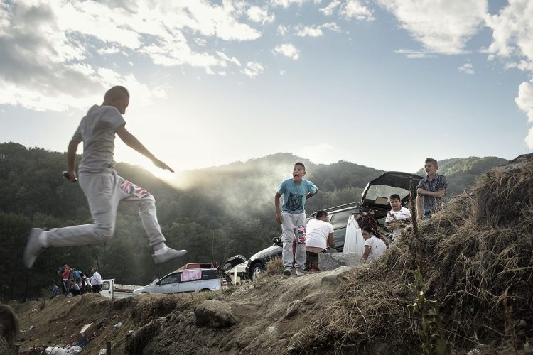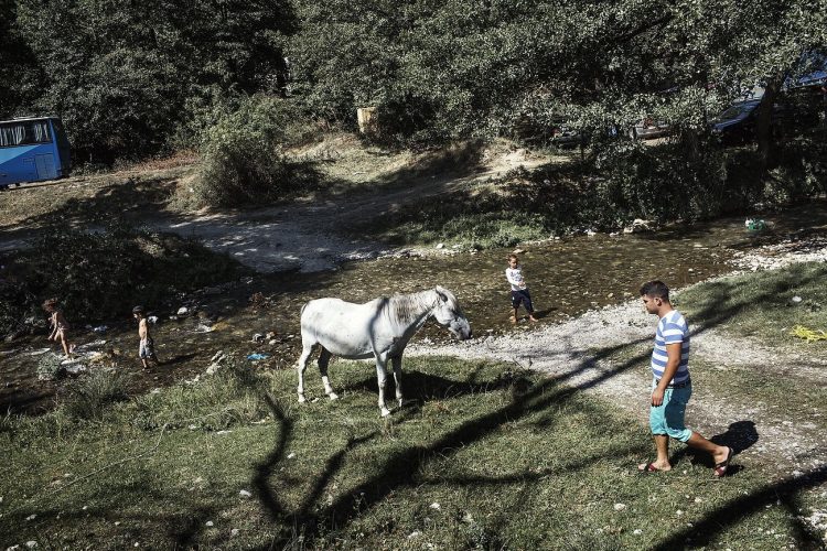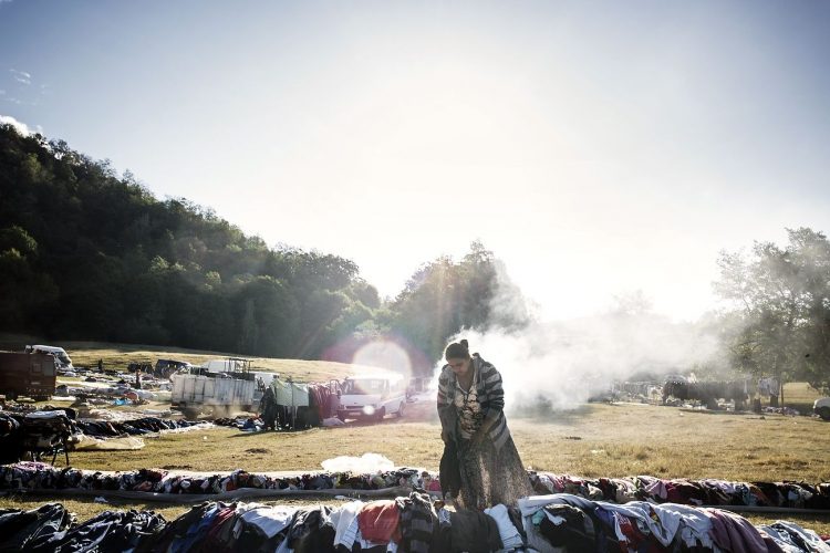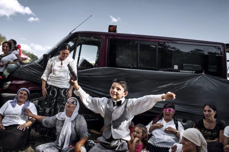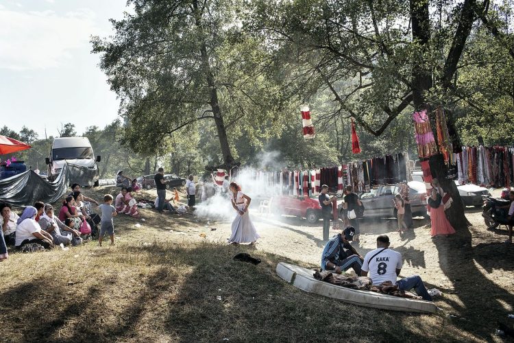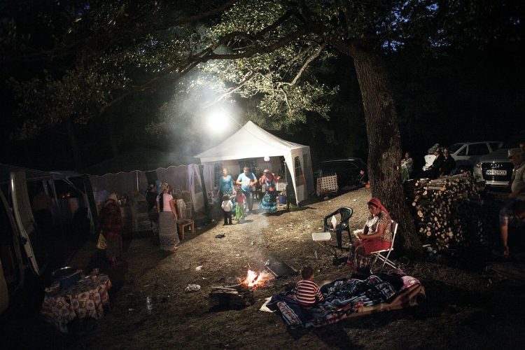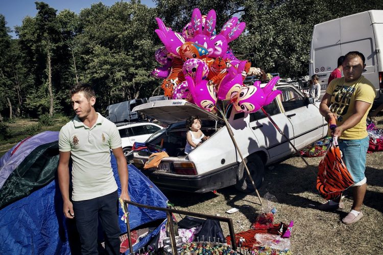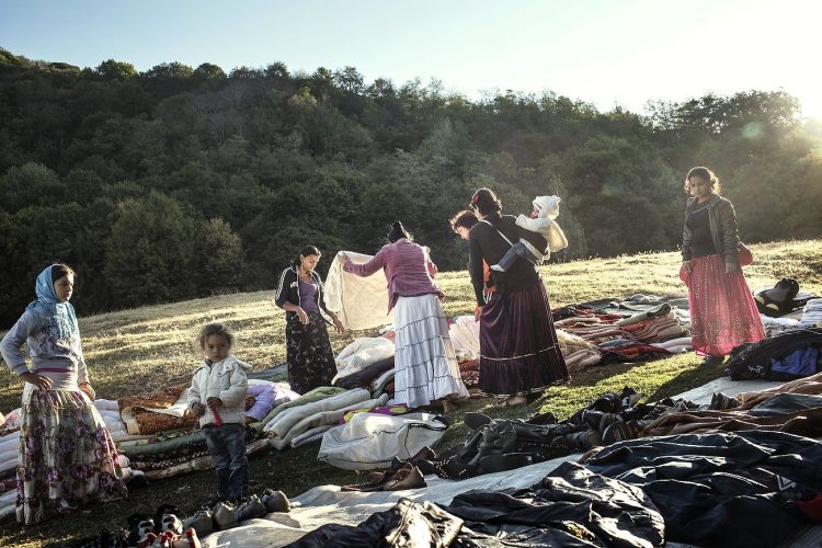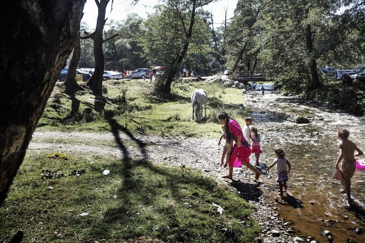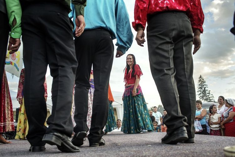 Romanians of Roma origins during the traditional ethnic Roma festival in Costesti, 210 km (128 miles) west of Bucharest, September 8, 2012. Following their tradition, thousands of Roma from all over Romania, which has Europe's largest Roma community, gather every year to celebrate the birthday of St. Mary, to make wedding arrangements for their sons and daughters and to show off their wealth.