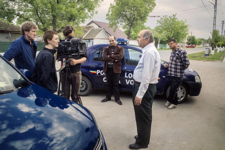 CUZA VODA, ROMANIA - MAY 12: Mayor of Cuza Voda interviewed by a team of Dutch Journalists talking about Roma people access to educational projects founded by EU (POSDRU) in Cuza Voda on May 12, 2015. Photography by Mugur Varzariu/Getty Images/Newsweek.