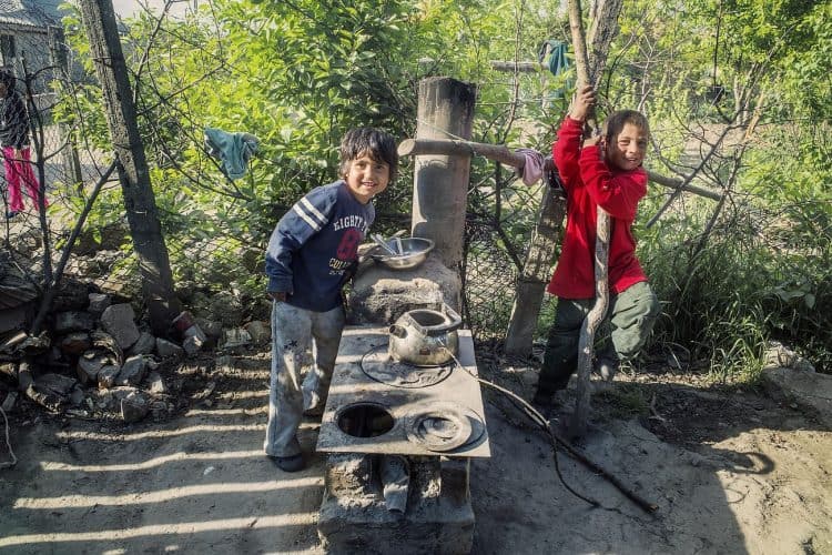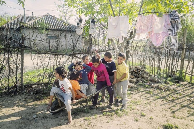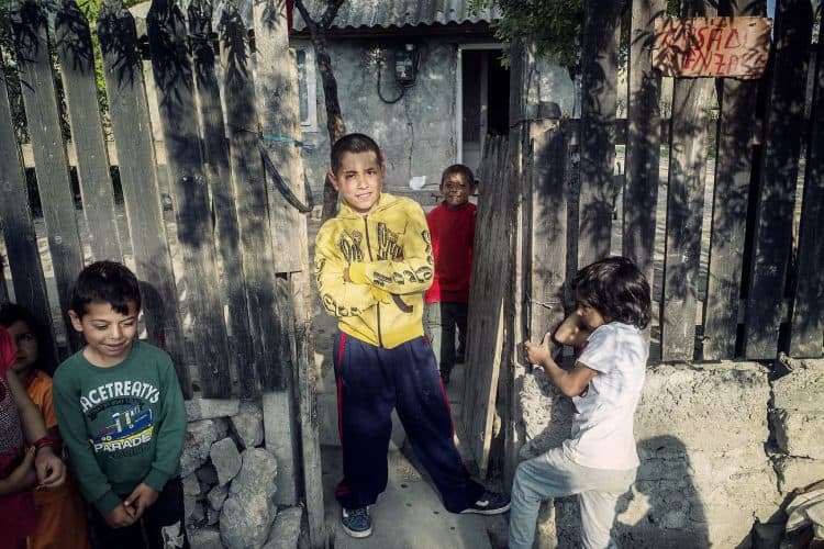 CUZA VODA, ROMANIA - MAY 12: Kids of Roma origins, allegedly beneficiaries of an educational project founded by EU (POSDRU) in Cuza Voda on May 12, 2015. Photography by Mugur Varzariu/Getty Images/Newsweek.