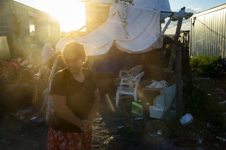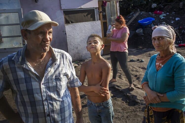EFORIE SUD, ROMANIA - SEP 06: Ahmet Armani (M) and other Roma of Turkish origin in Eforie Sud, on September 06, 2022. Roma community living near a new municipal refuse site at Eforie Sud in the Northern Dobruja region of Romania, struggle without electricity and running water and face imminent evictions after the city-hall claimed in court that the community lacks proper tenure since 2015. Regardless of international pressure to stop such practices, local authorities continue to forcibly evict the remaining Roma people, including young children, often leaving them with no shelter facing extreme weather conditions and a lack of food.