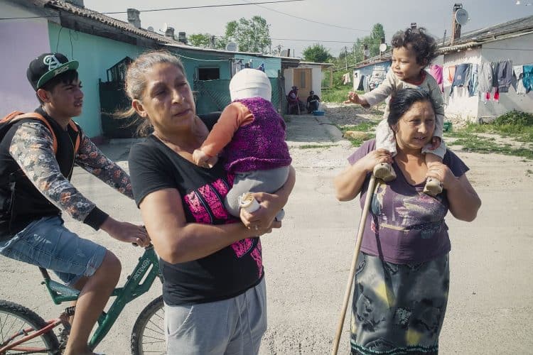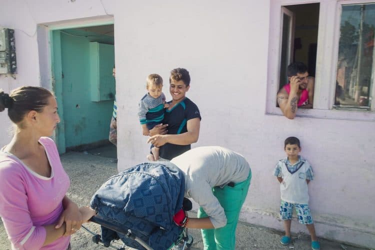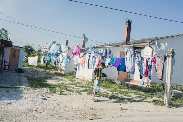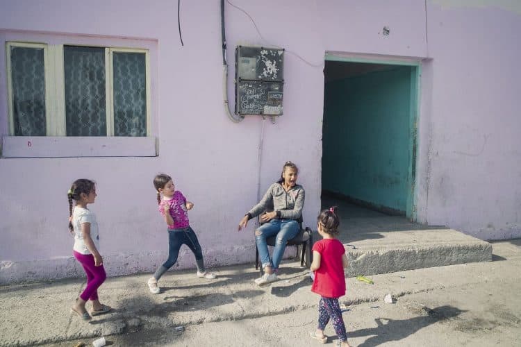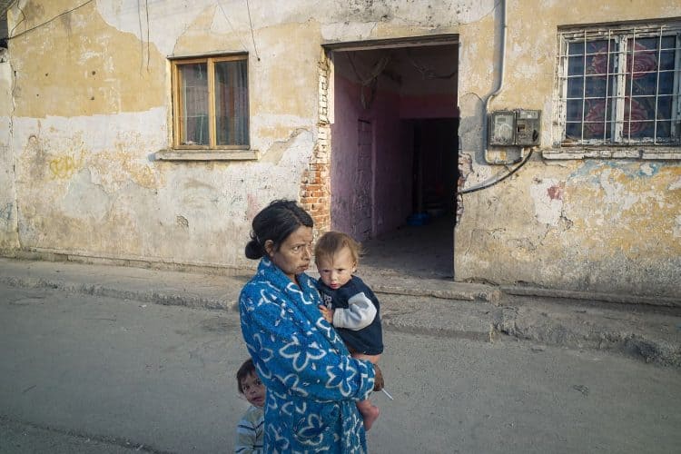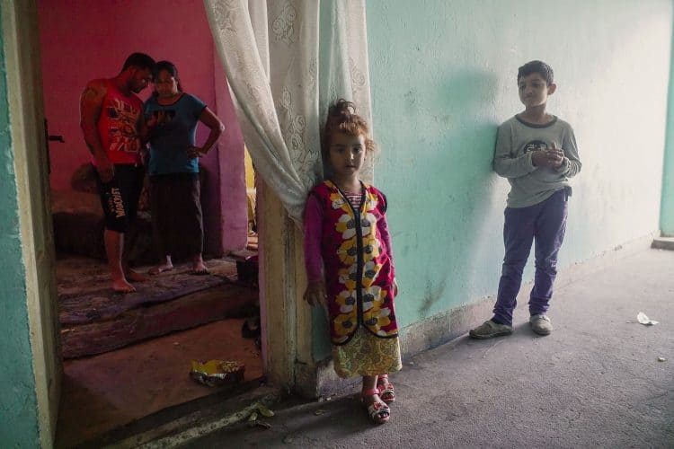 MANGALIA, ROMANIA - MAY 21: Roma people living in a social housing complex known as La Baraci, threaten to be evicted by the city hall in Mangalia on May 21, 2014. Photography by Mugur Varzariu/Getty Images/Newsweek.