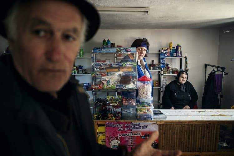 Villager gestures while expressing racists comments regarding the Roma community in Rosia and in general. His racists comments where shared by the saleswoman, an employee (M), as seen in a family small store across the Waldorf School in Rosia on May 6, 2014. The Waldorf School in nearby Sibiu founded the Hans Spalinger School. It started in 1998 as a literacy program for children from the Roma minority, and in 2000, the initiative was officially approved by the School Inspectorate in Sibiu as a public Waldorf school, and was then eventually extended by a vocational course with the emphasis on agriculture in 2004. Unfortunately, all vocational schools were abolished in Romania in 2009 and therefore, the school has to fight for a new official recognition by the Ministry for its professional training. Since September 2010, the school also has a kindergarten class, which is supported by the Waldorf association and is additionally funded through donations from Switzerland.