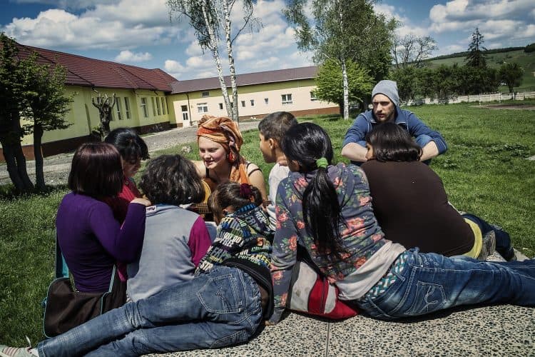 Mashia Schisch, a German volunteer playing a Roma song to Romanian kids of Roma origins, as seen in Rosia on May 6, 2014.The Waldorf School in nearby Sibiu founded the Hans Spalinger School. It started in 1998 as a literacy program for children from the Roma minority, and in 2000, the initiative was officially approved by the School Inspectorate in Sibiu as a public Waldorf school, and was then eventually extended by a vocational course with the emphasis on agriculture in 2004. Unfortunately, all vocational schools were abolished in Romania in 2009 and therefore, the school has to fight for a new official recognition by the Ministry for its professional training. Since September 2010, the school also has a kindergarten class, which is supported by the Waldorf association and is additionally funded through donations from Switzerland.