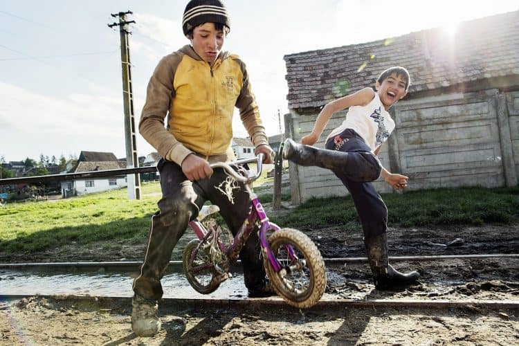 Romanian kid of Roma origins playing by the dismantled narrow gauge forestry steam train tracks, as seen in Rosia on May 5, 2013.The Waldorf School in nearby Sibiu founded the Hans Spalinger School. It started in 1998 as a literacy program for children from the Roma minority, and in 2000, the initiative was officially approved by the School Inspectorate in Sibiu as a public Waldorf school, and was then eventually extended by a vocational course with the emphasis on agriculture in 2004. Unfortunately, all vocational schools were abolished in Romania in 2009 and therefore, the school has to fight for a new official recognition by the Ministry for its professional training. Since September 2010, the school also has a kindergarten class, which is supported by the Waldorf association and is additionally funded through donations from Switzerland.