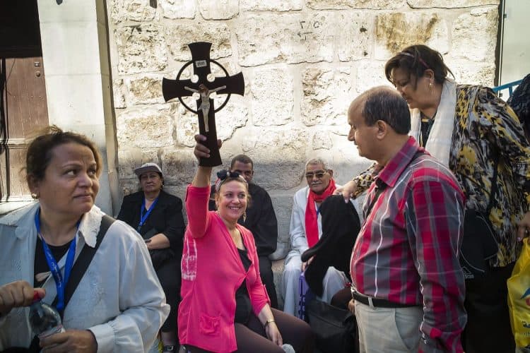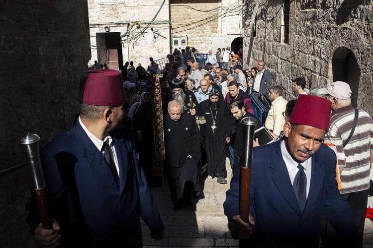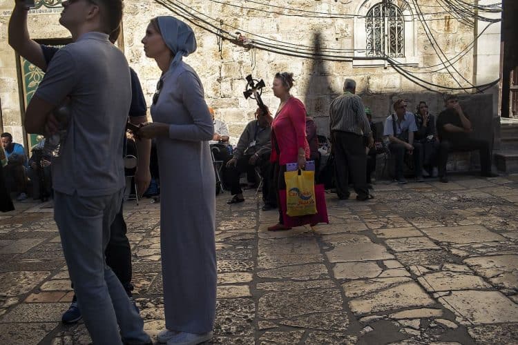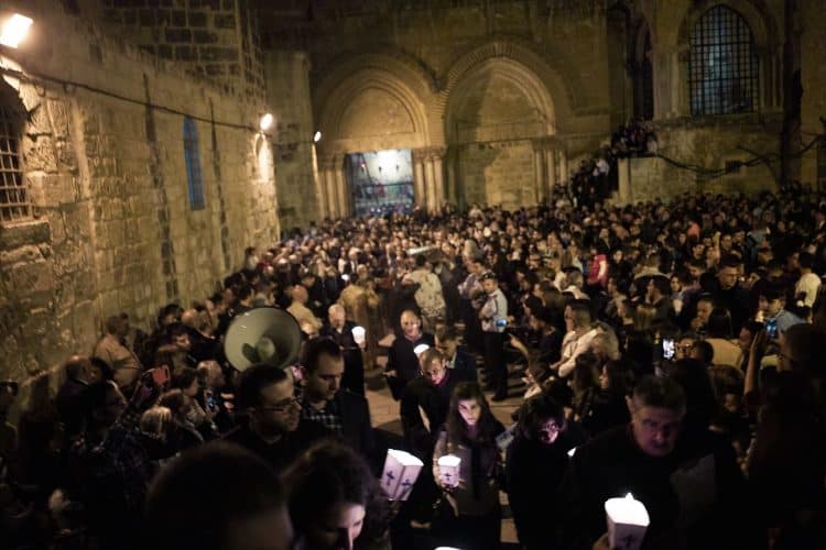 People as seen in Jerusalem on April 29, 2019. Thousands of Christians are expected in Jerusalem on April 30 for the ancient fire ceremony that celebrates Jesus' resurrection