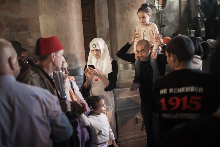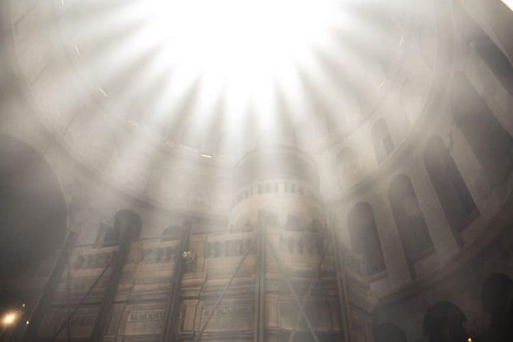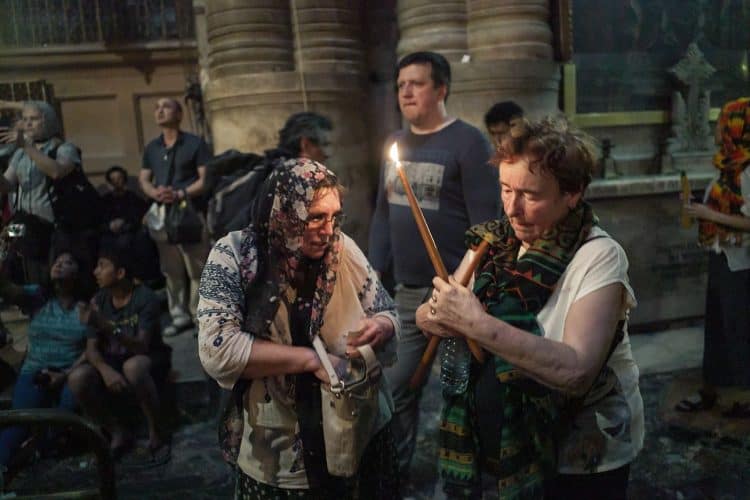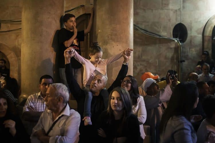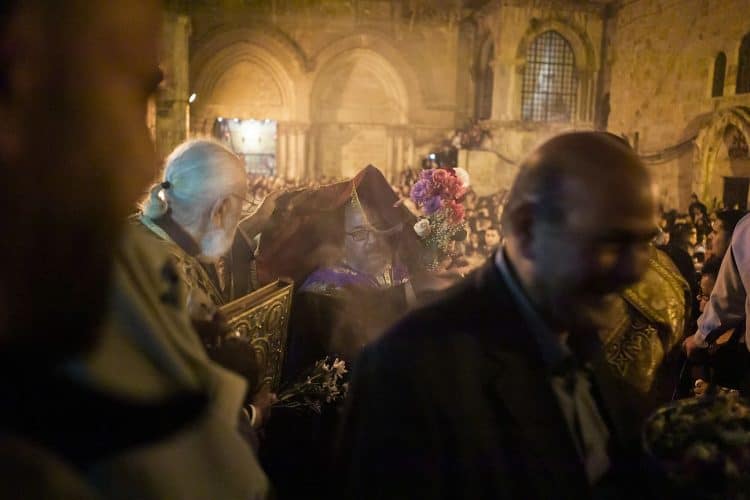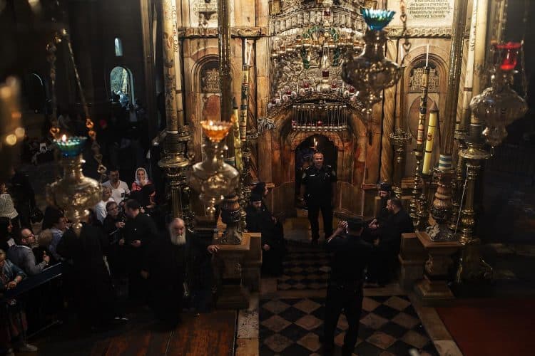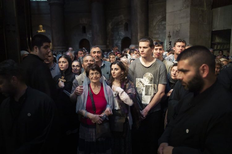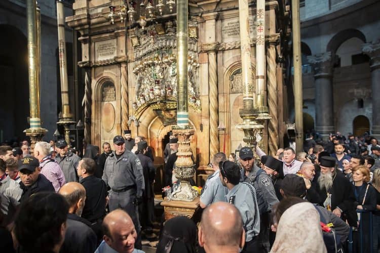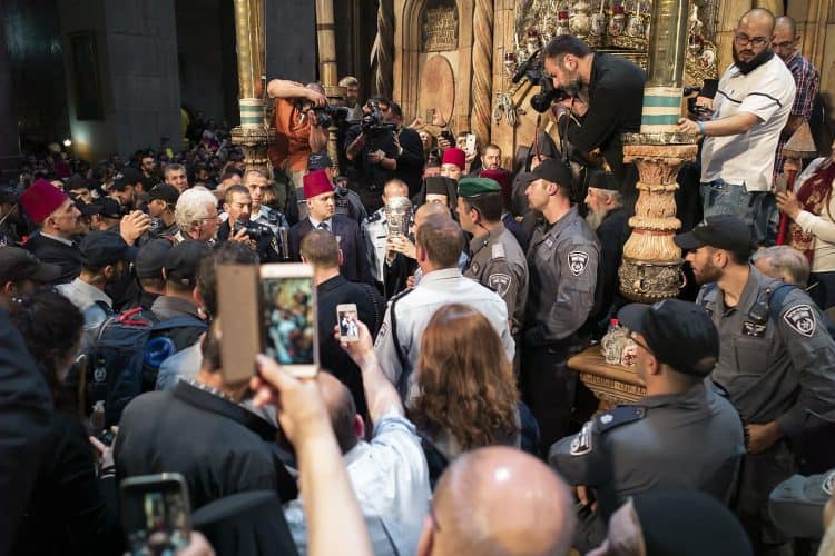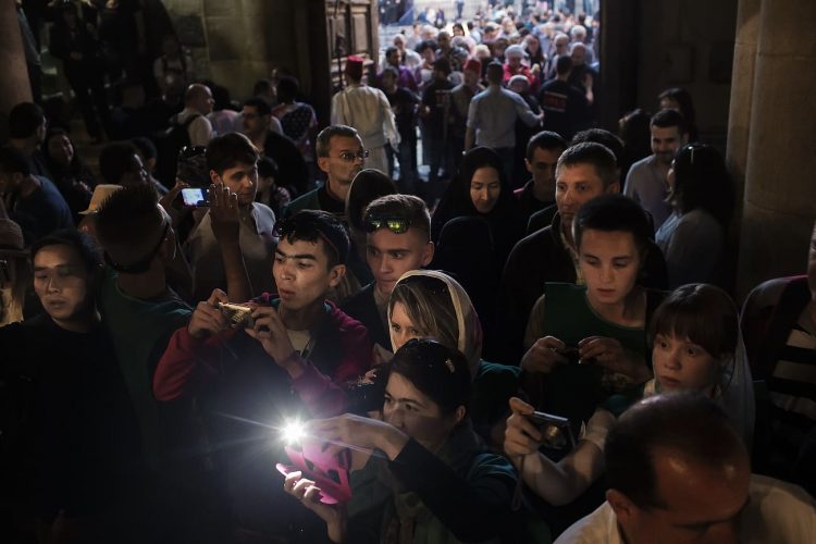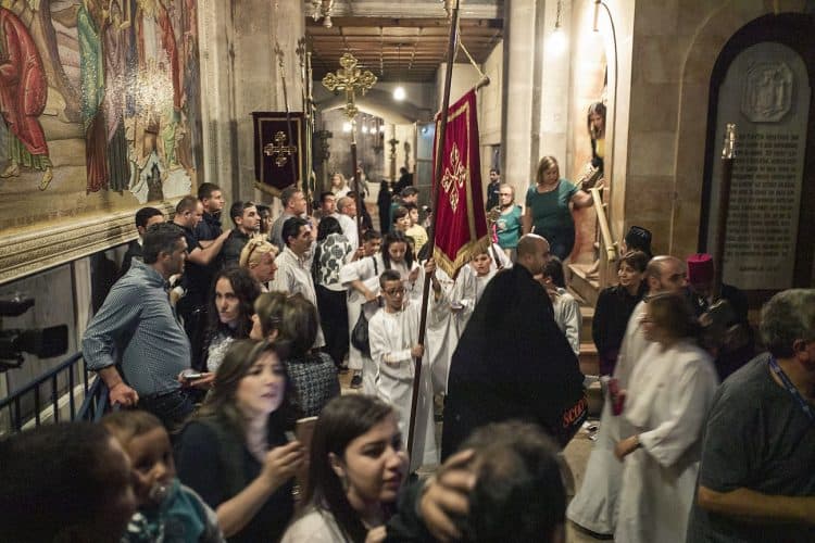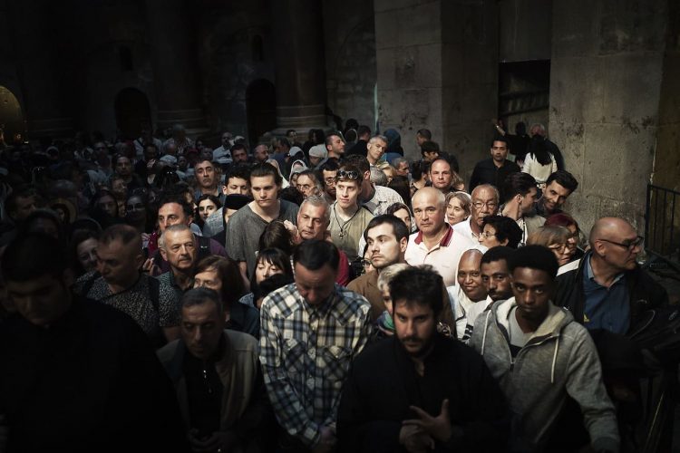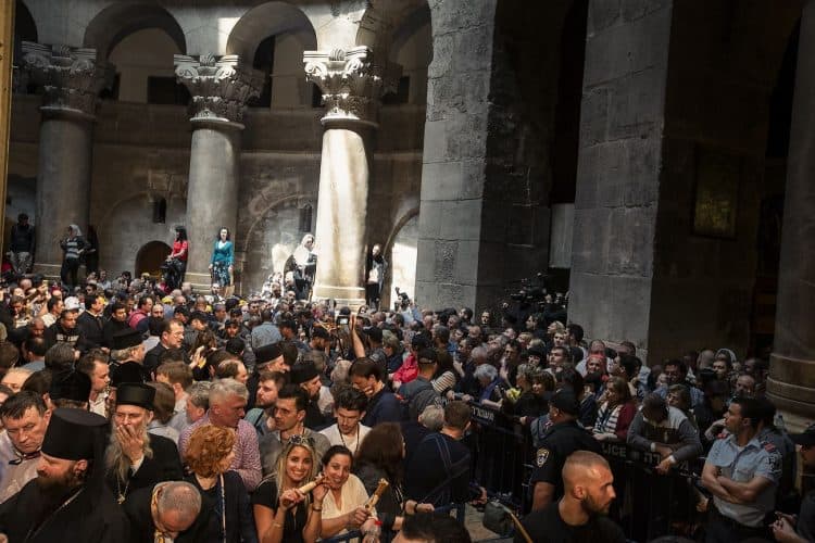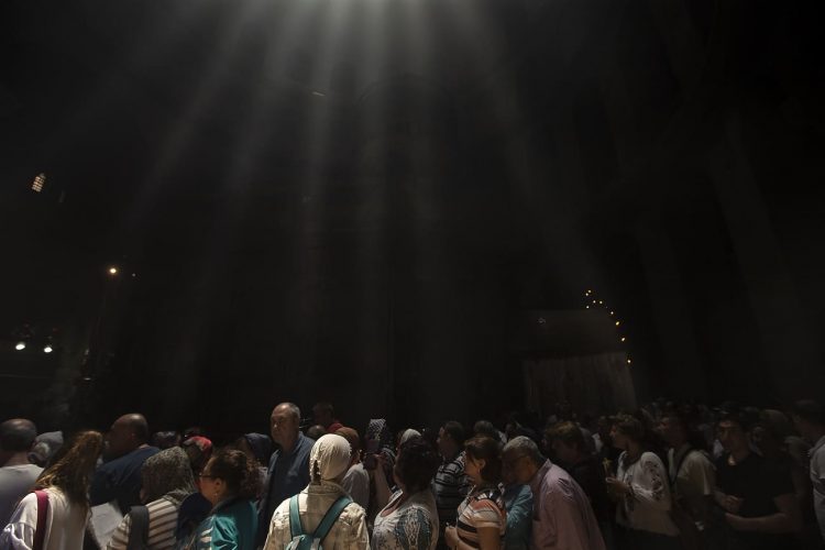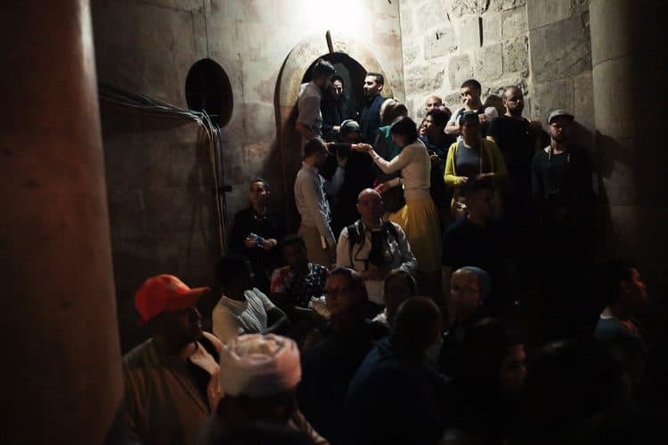 People inside the church of The Holy Sepulcher, as seen in Jerusalem on 1 May, 2019. On April 30, thousands of Christians gathered in Jerusalem for the ancient fire ceremony that celebrates Jesus' resurrection.