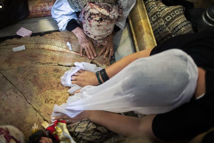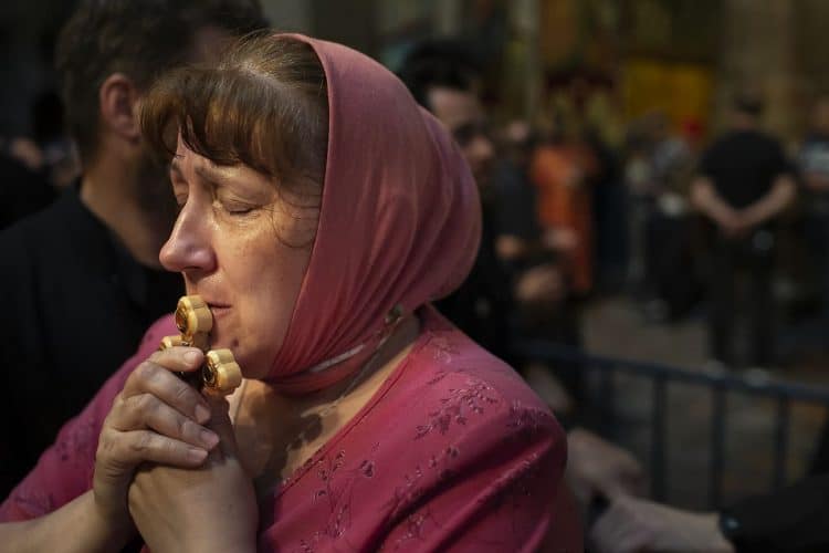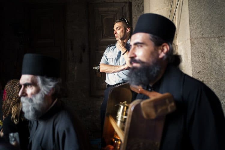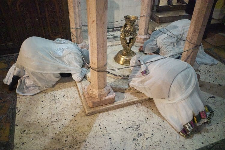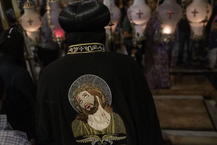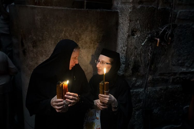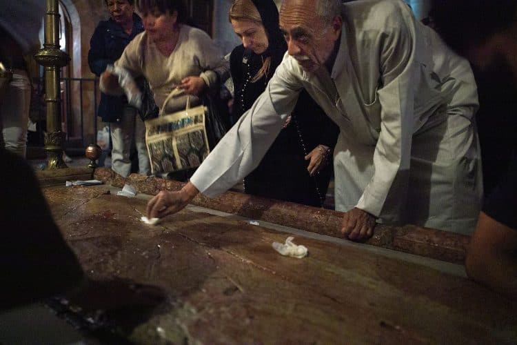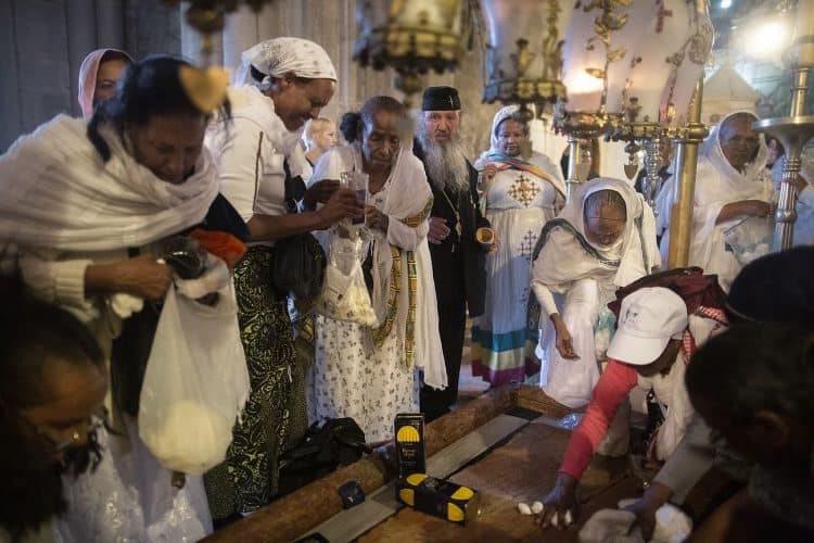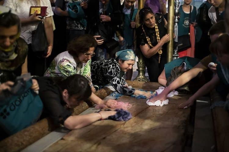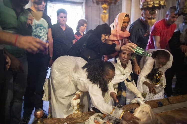 Christian Orthodox as seen inside the church of the Holy Sepulcher, traditionally believed to be the burial site of Jesus Christ, May 1, 2016 in Jerusalem. On April 30, thousands of Christians have gathered in Jerusalem for the ancient fire ceremony that celebrates Jesus' resurrection.