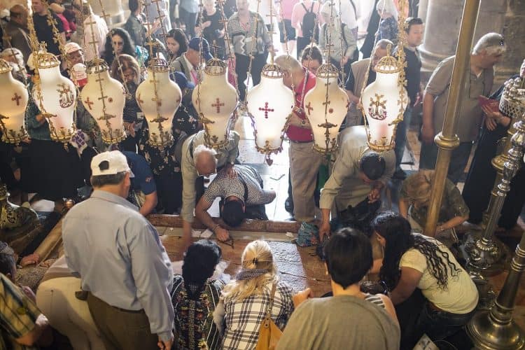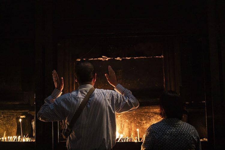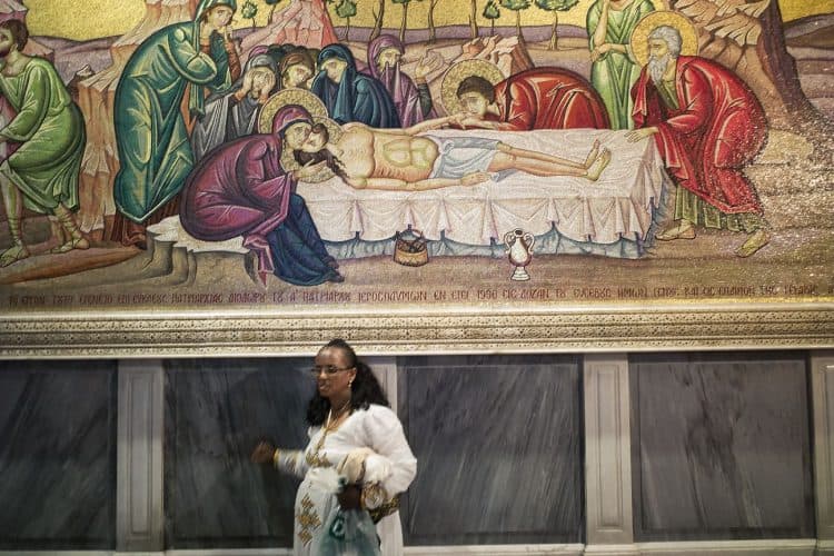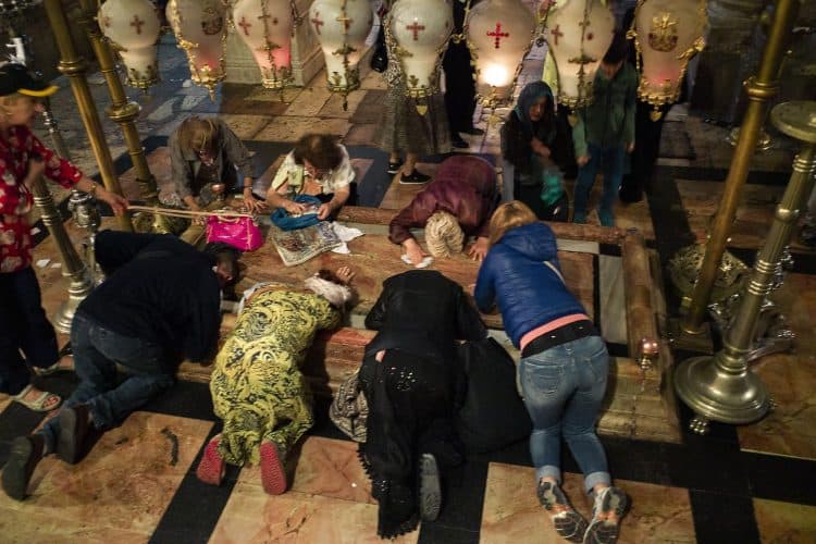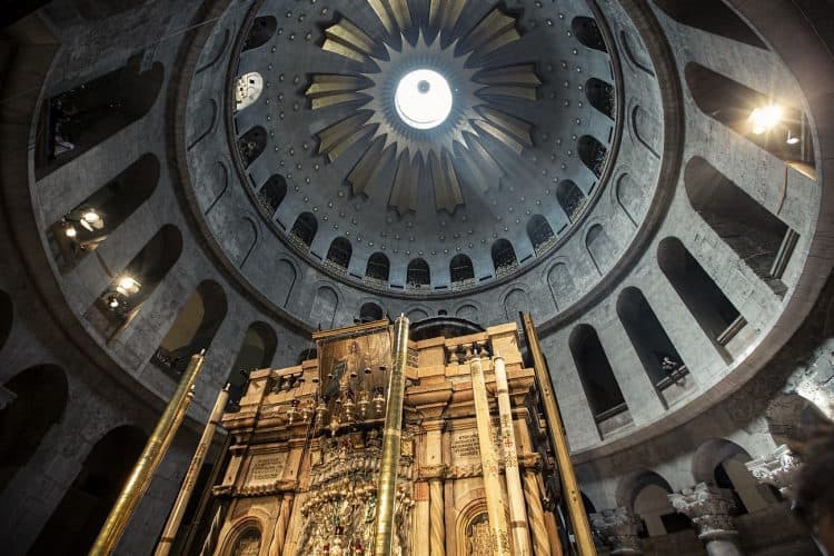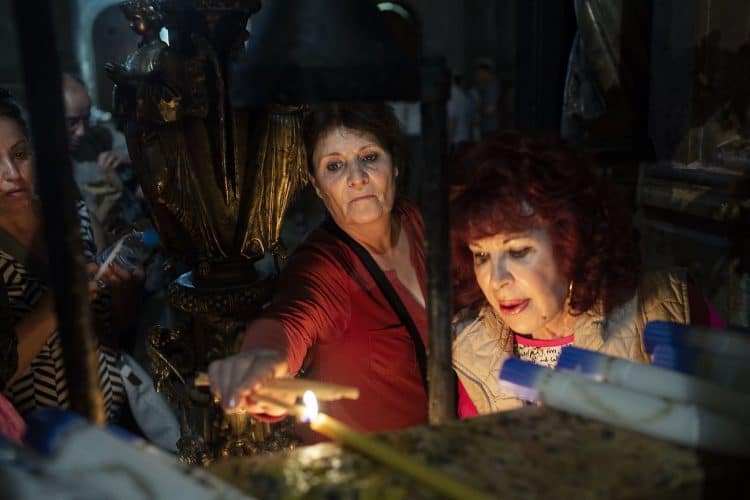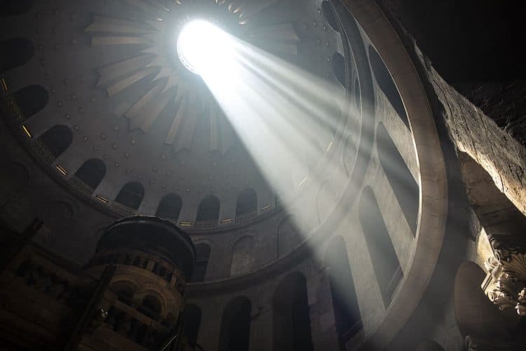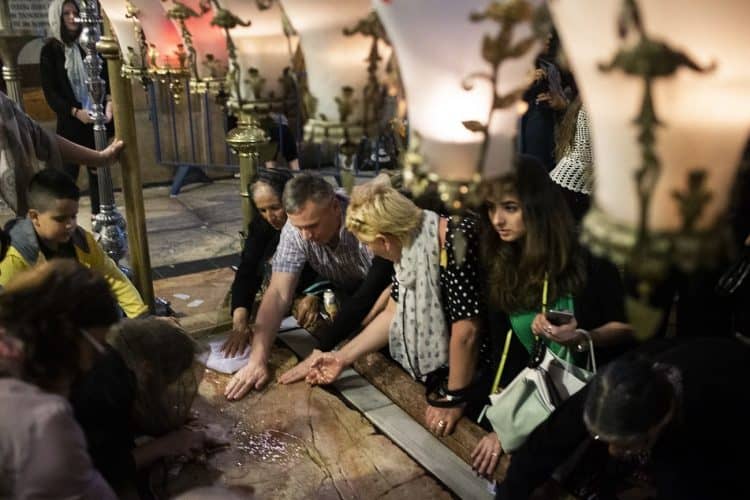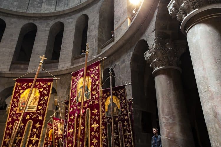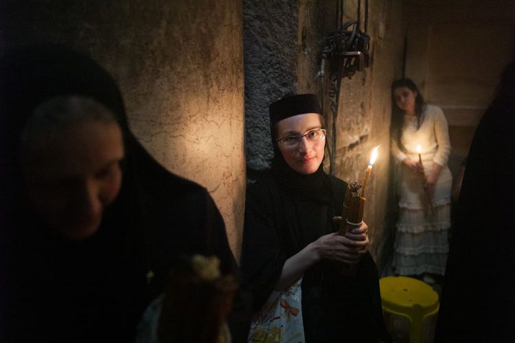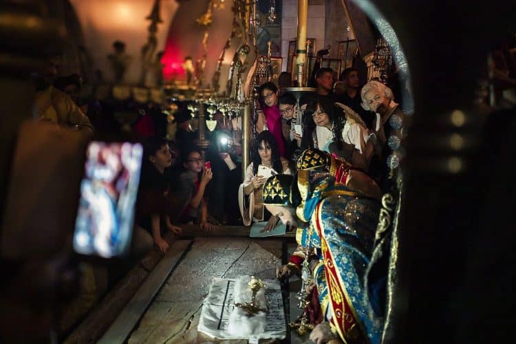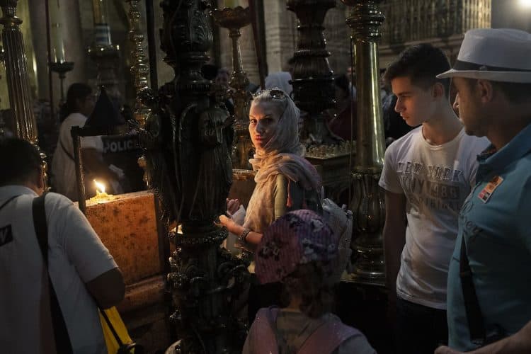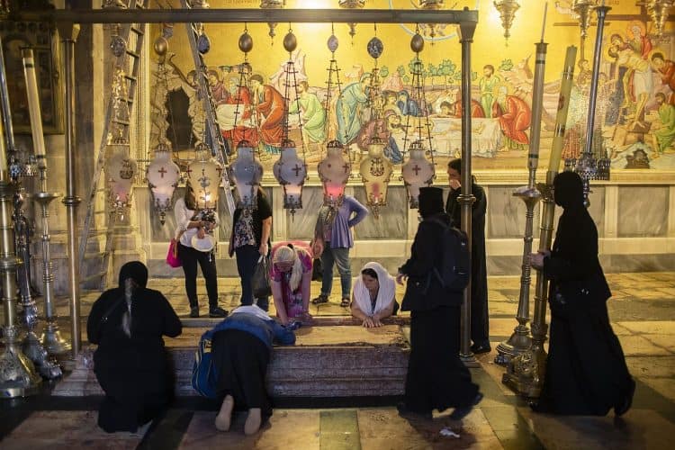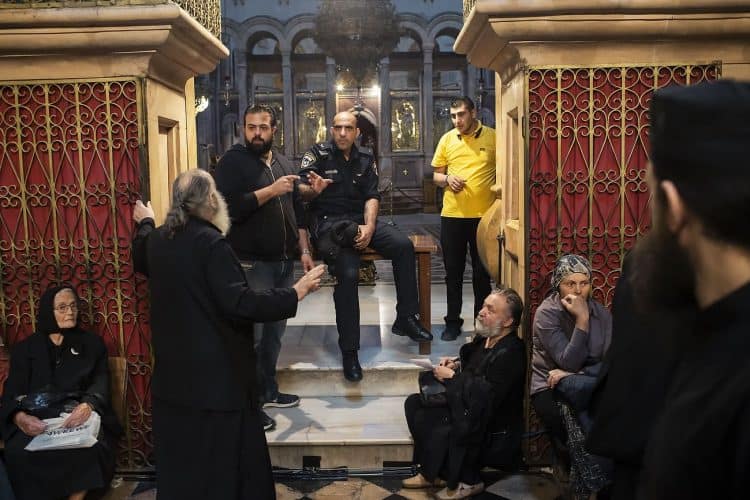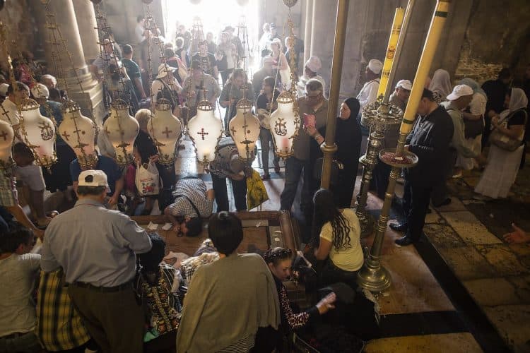 People inside the church of the Holy Sepulcher, as seen in Jerusalem on April 29, 2019. Thousands of Christians are expected in Jerusalem on April 30 for the ancient fire ceremony that celebrates Jesus' resurrection