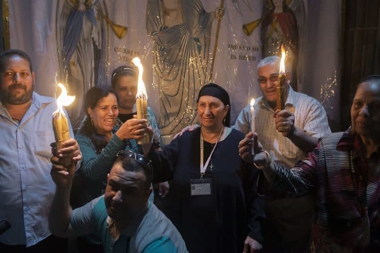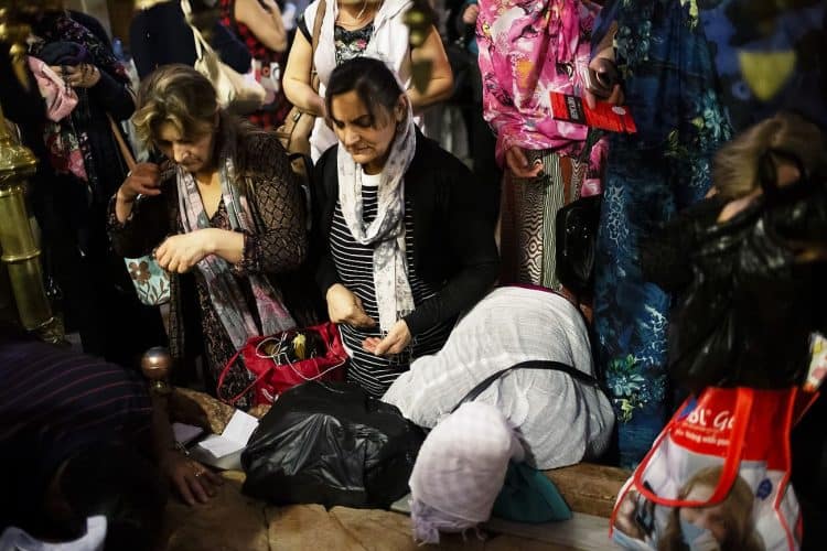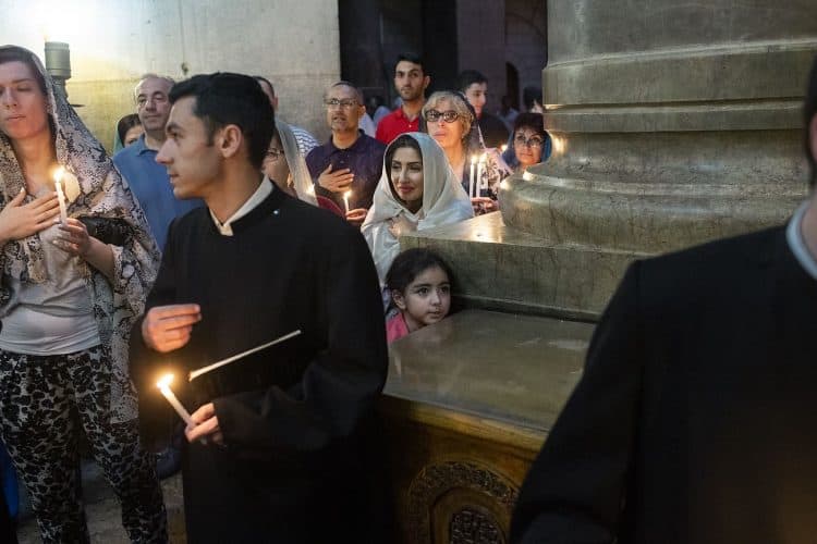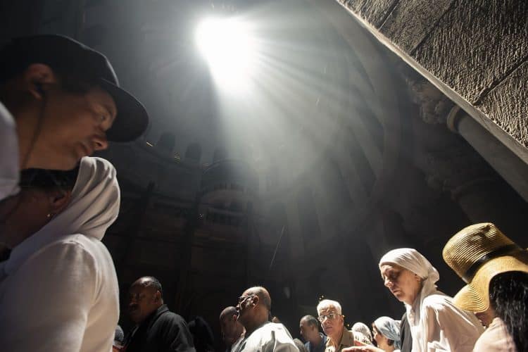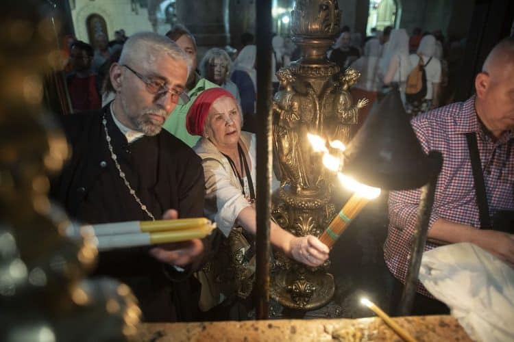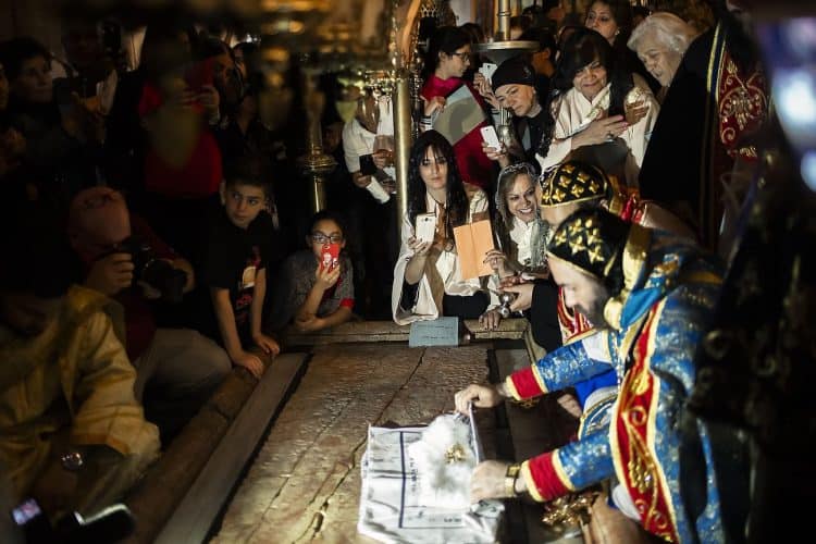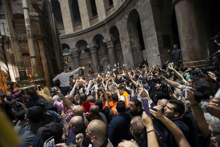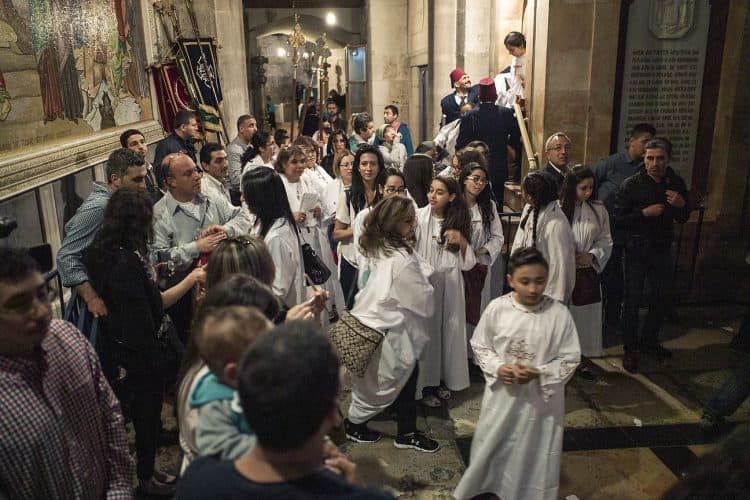 People inside the church of the Holy Sepulcher, as seen in Jerusalem on May 1, 2019. Thousands of Christians have gathered in Jerusalem on April 30 for the ancient fire ceremony that celebrates Jesus' resurrection