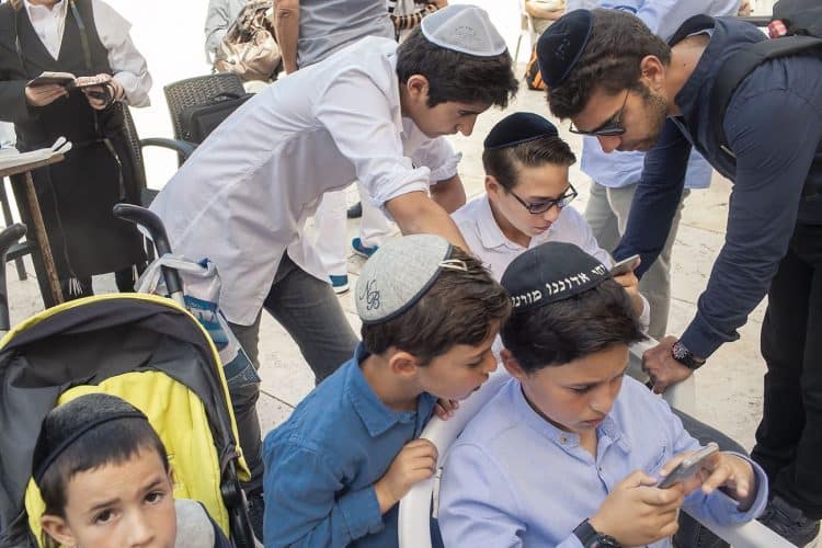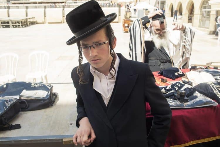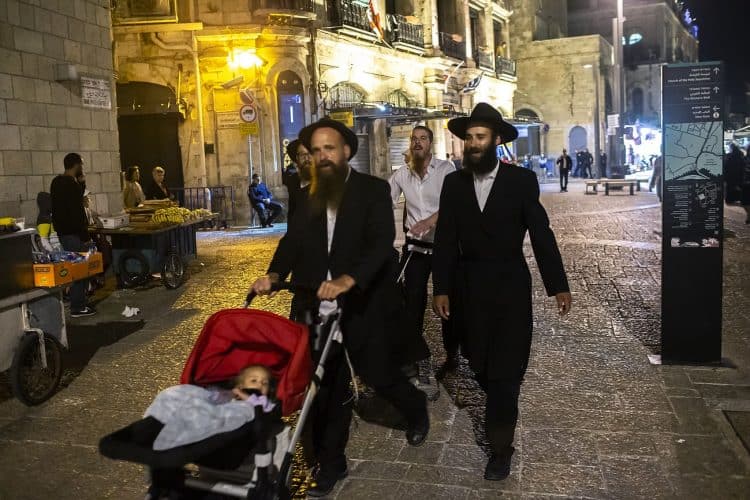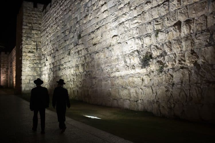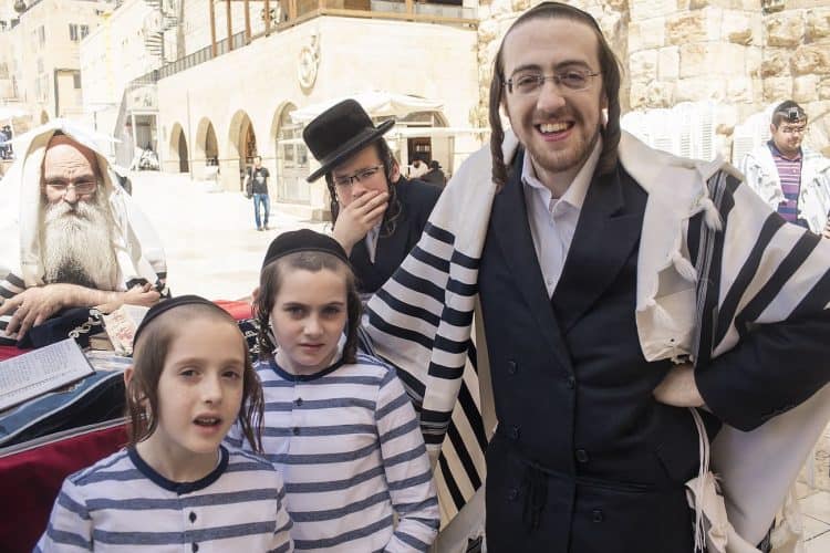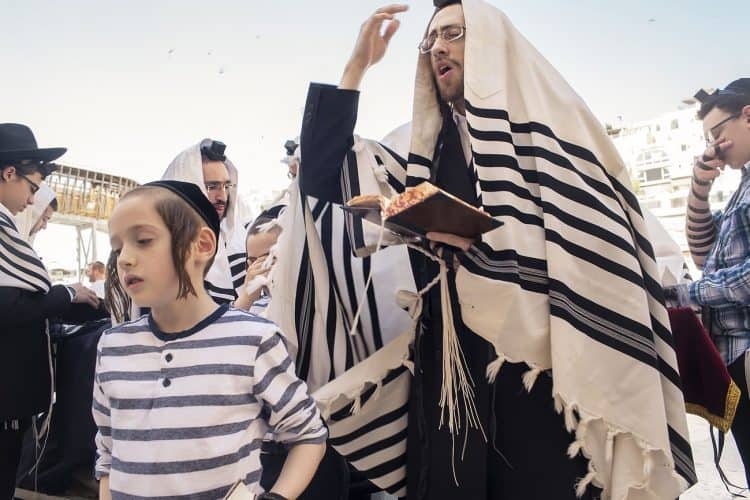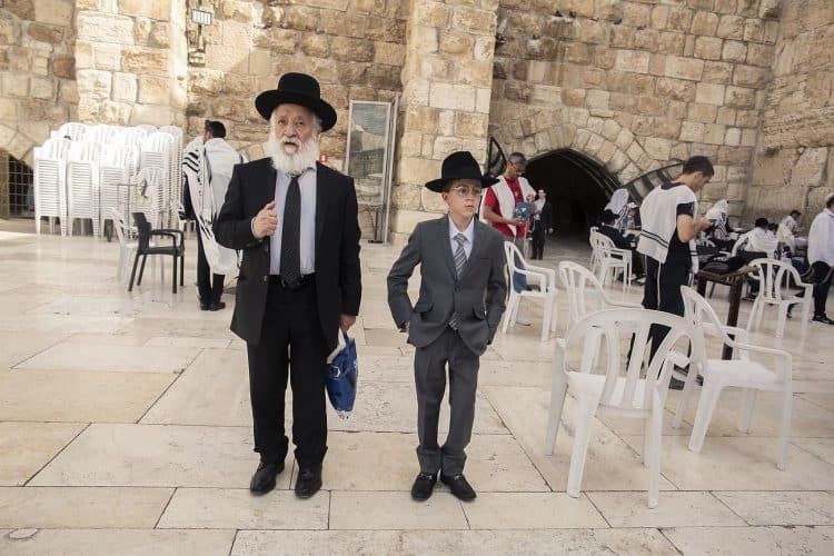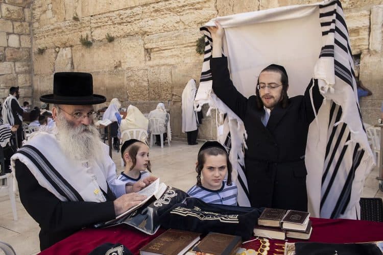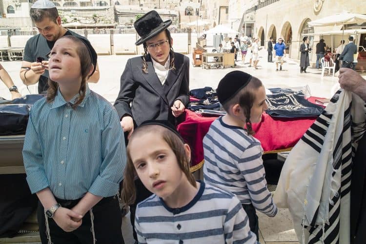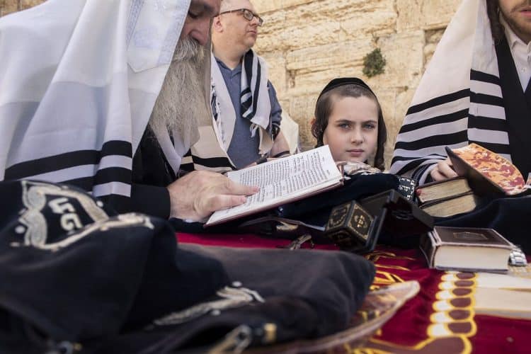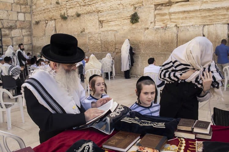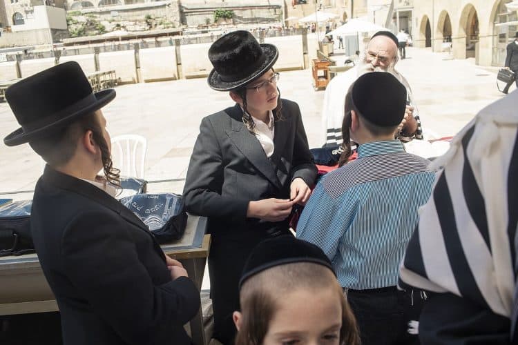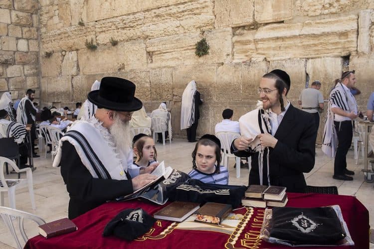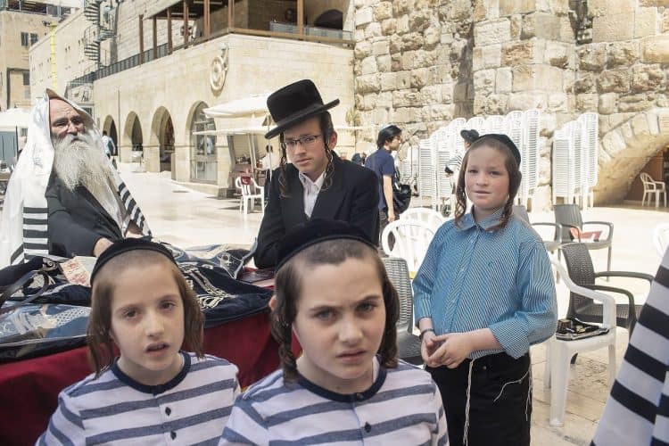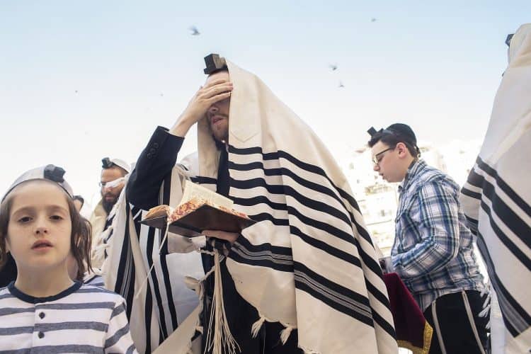 Orthodox Jews pray before the Western Wall in Jerusalem and study the Torah, as seen in Jerusalem on May 1, 2019.
