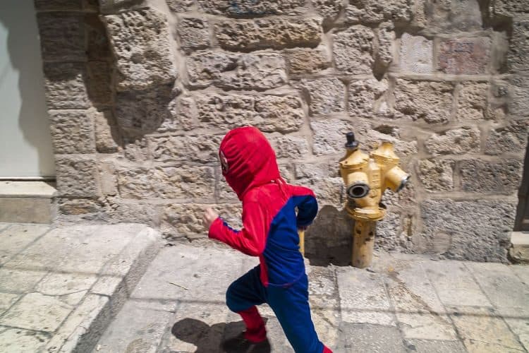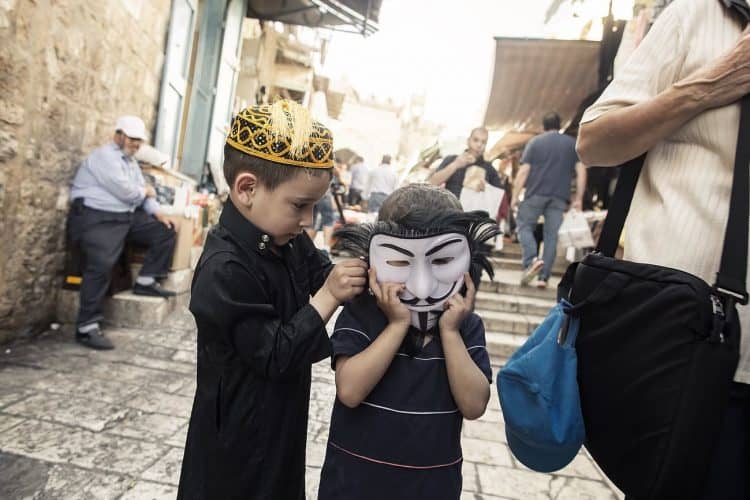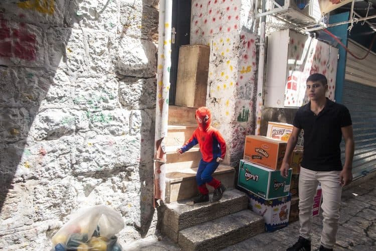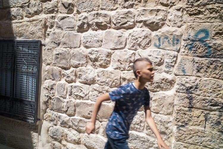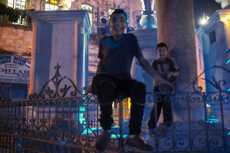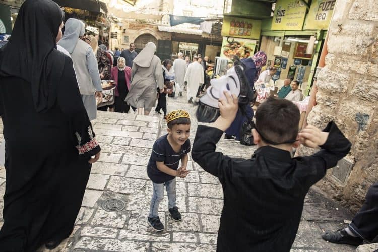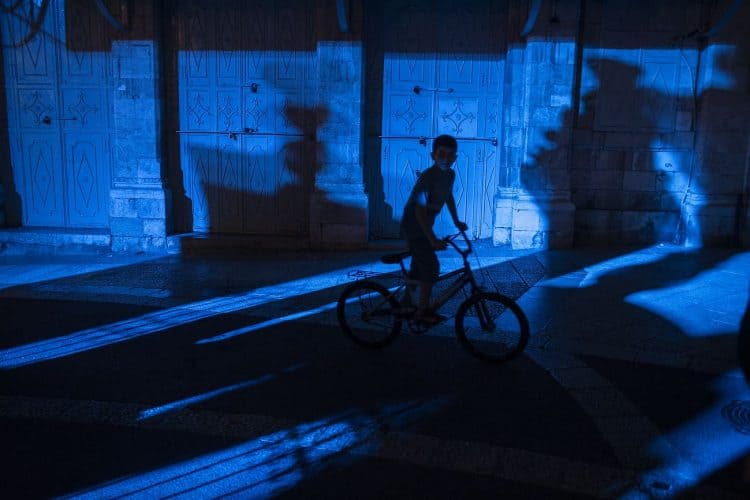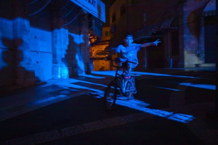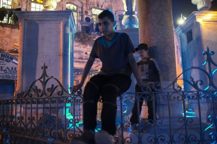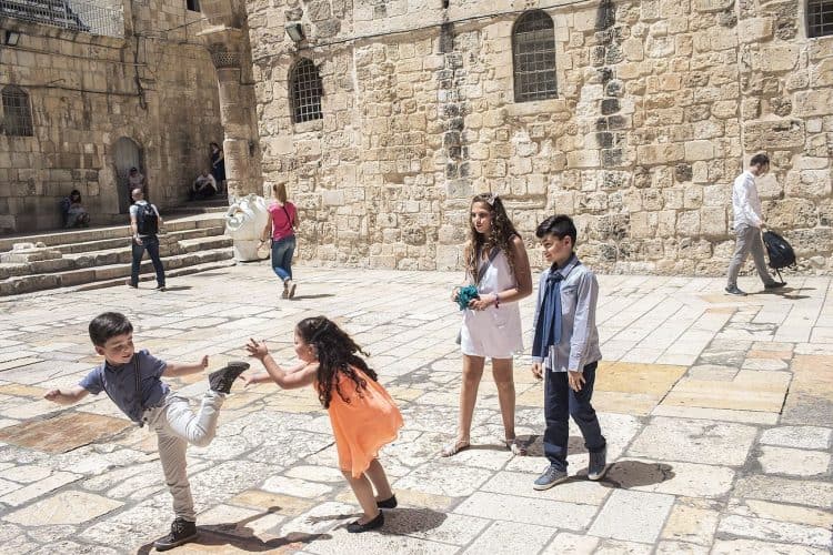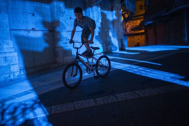 Palestinian kids riding their bikes as seen in Jerusalem on May 1, 2019. On April 30, thousands of Christians have gathered in Jerusalem for the ancient fire ceremony that celebrates Jesus' resurrection.