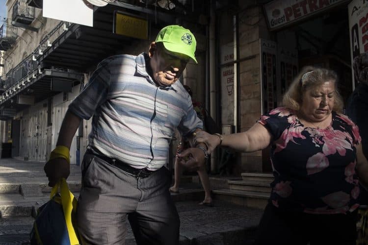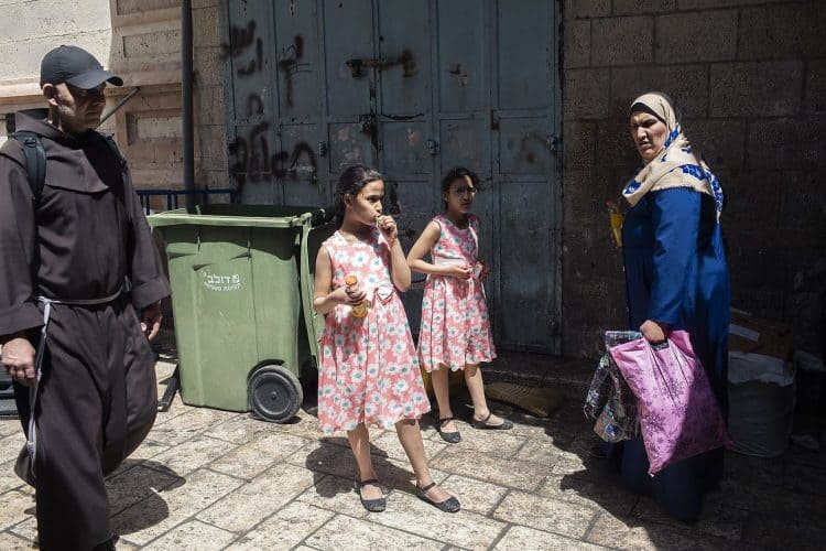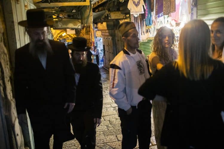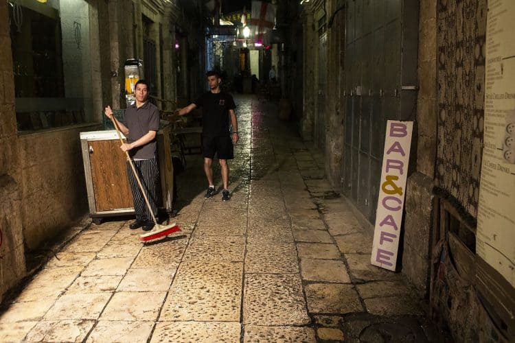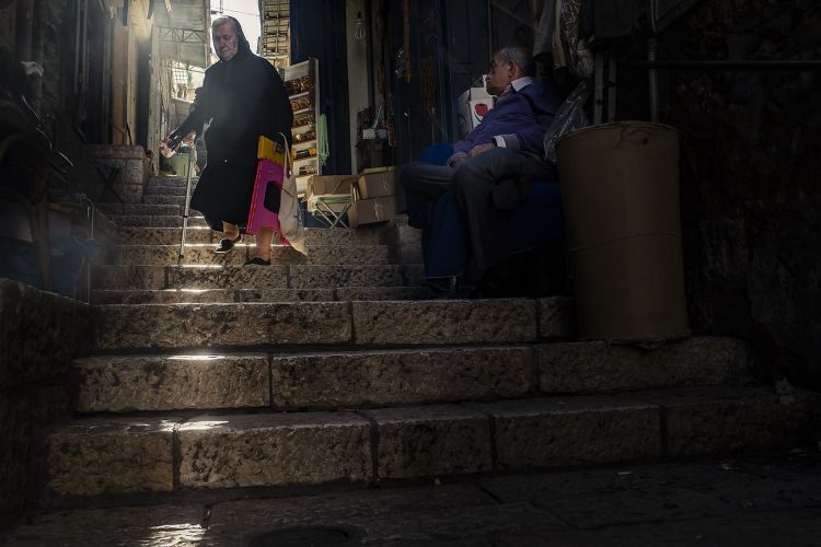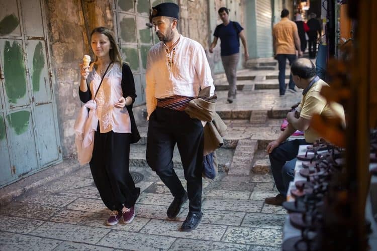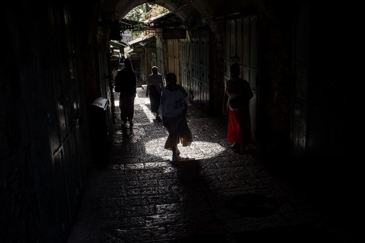 People walking on the narrow streets of the Old Town, as seen in Jerusalem on May 1, 2019. On April 30, thousands of Christians have gathered in Jerusalem for the ancient fire ceremony that celebrates Jesus' resurrection.