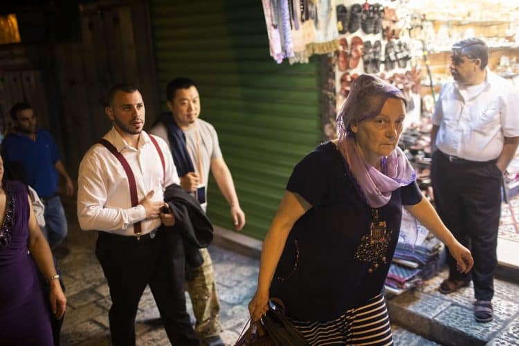 People walking on the narrow streets of the Old Town, as seen in Jerusalem on May 1, 2019. Thousands of Christians have gathered in Jerusalem on April 30 for the ancient fire ceremony that celebrates Jesus' resurrection.