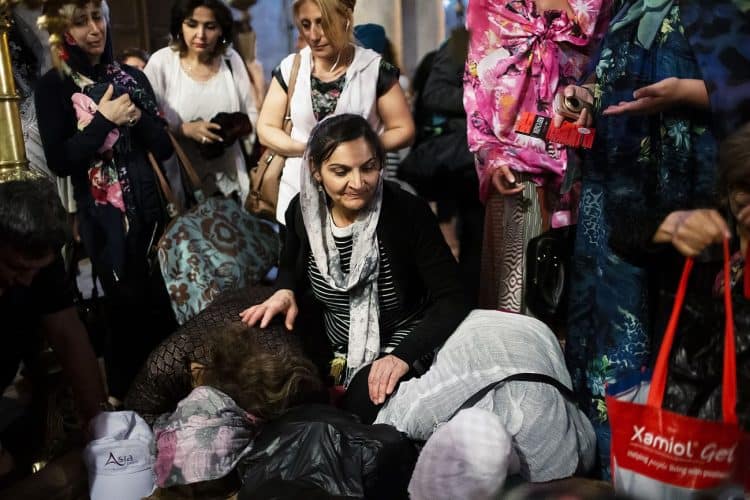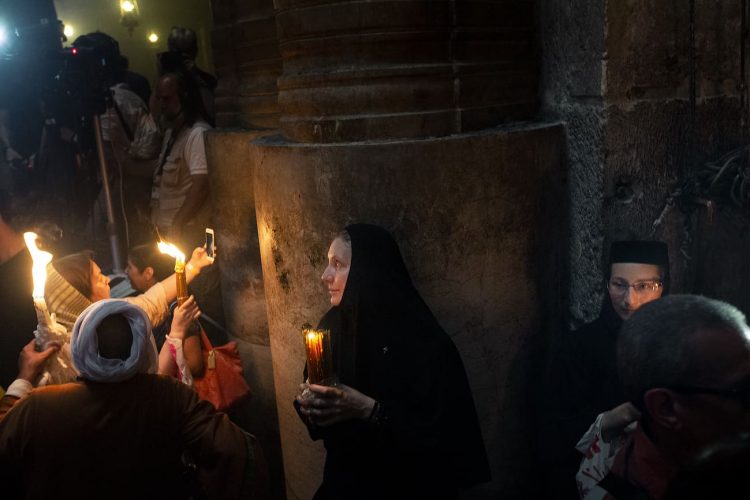 People inside the church of the Holy Sepulcher, as seen in Jerusalem on May 1, 2019. Thousands of Christians have gathered in Jerusalem on April 30 for the ancient fire ceremony that celebrates Jesus' resurrection.